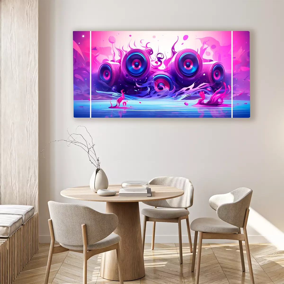 De roze energie van muziek en luidsprekers