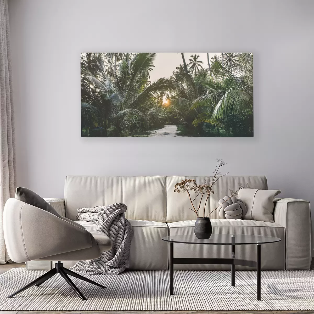 De print wordt aangebracht op hoogwaardig canvas dat op een schildersweefgetouw (spieraam) wordt gespannen. Omdat de print de zijranden bedekt, hoeft het ontwerp niet met een extra kader te worden omlijst. Wij raden ook composities aan die uit meerdere foto's bestaan en zo een coherente compositie vormen.