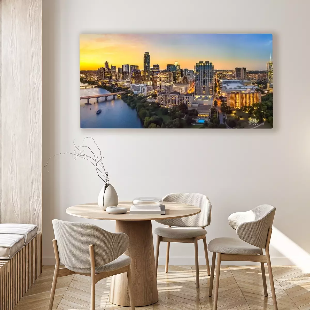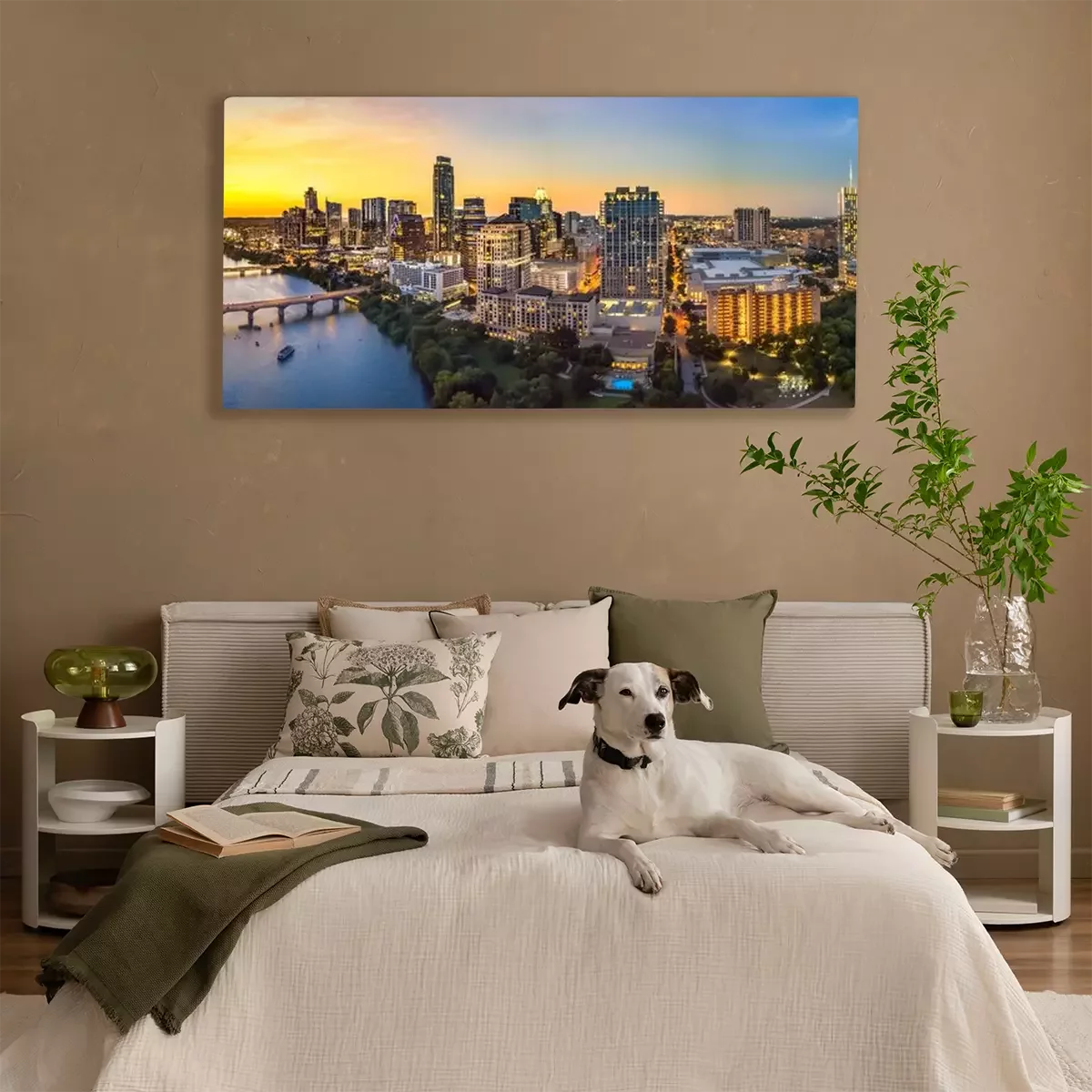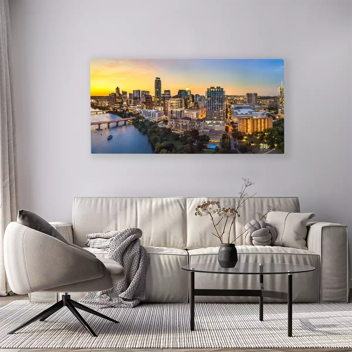 De print wordt aangebracht op hoogwaardig canvas dat op een schildersweefgetouw (spieraam) wordt gespannen. Omdat de print de zijranden bedekt, hoeft het ontwerp niet met een extra kader te worden omlijst. Wij raden ook composities aan die uit meerdere foto's bestaan en zo een coherente compositie vormen.