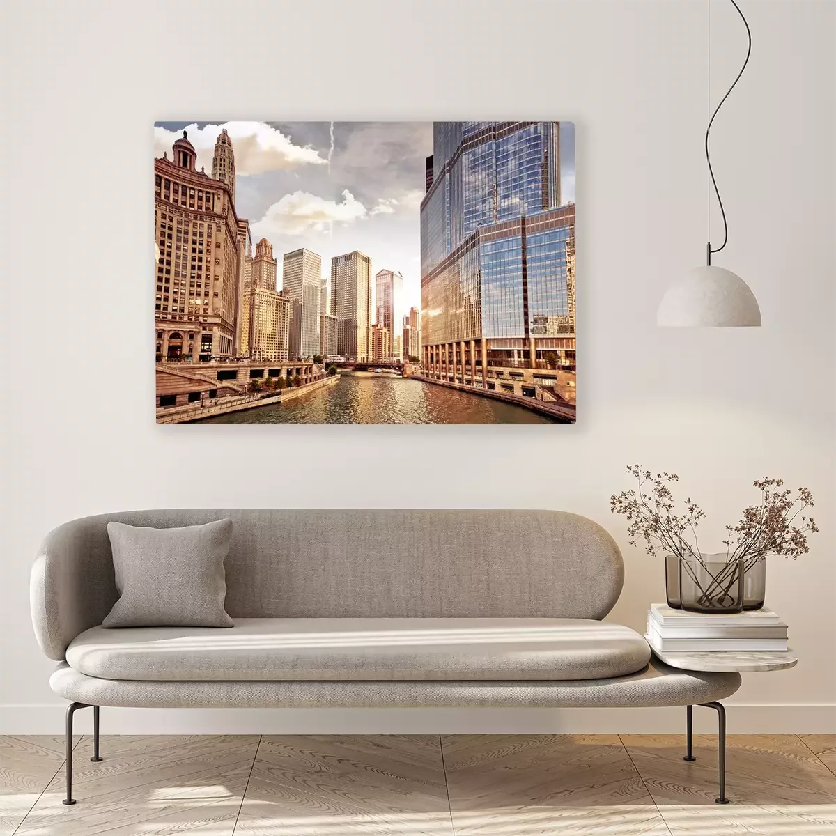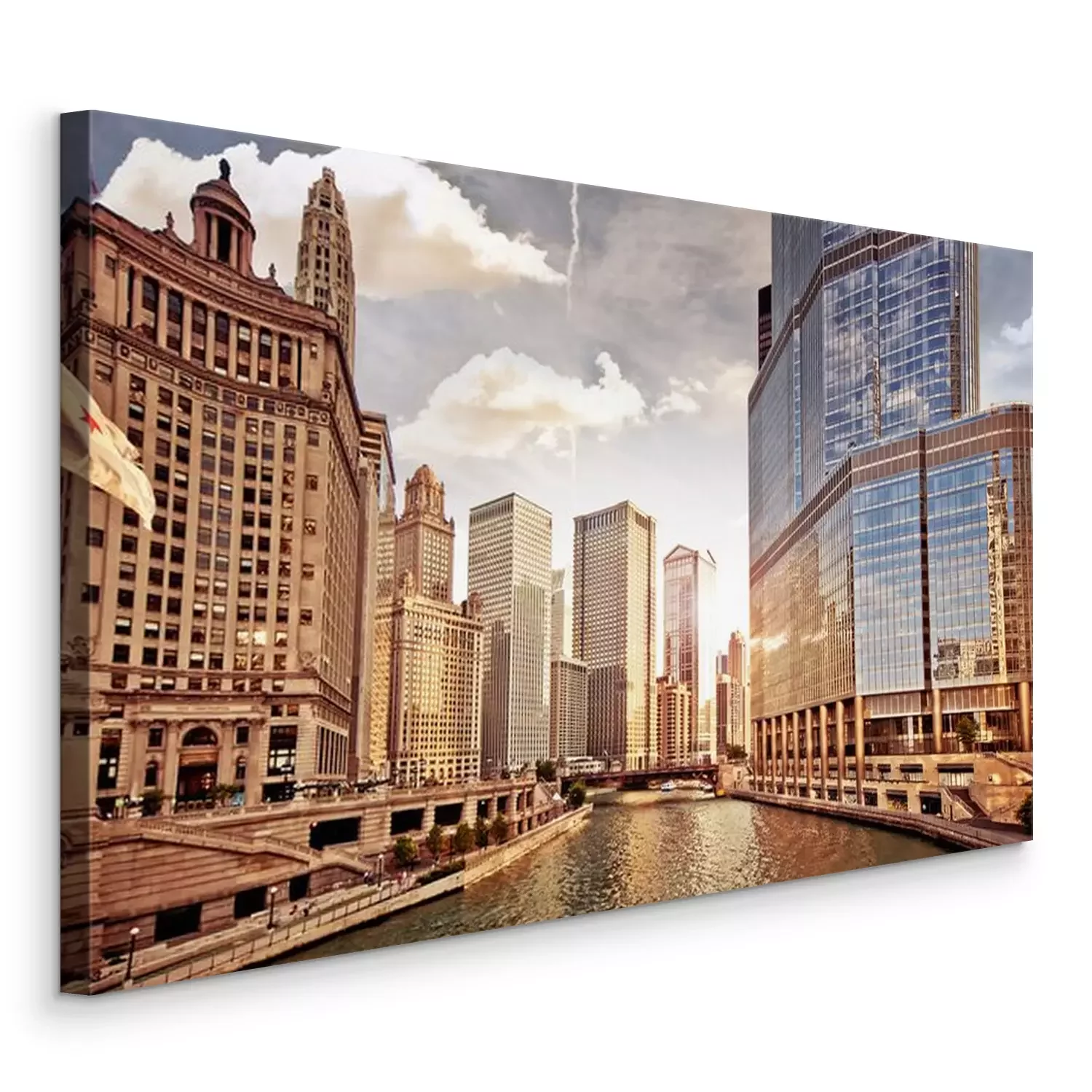 Canvas: De skyline van de stad Chicago bij zonsondergang