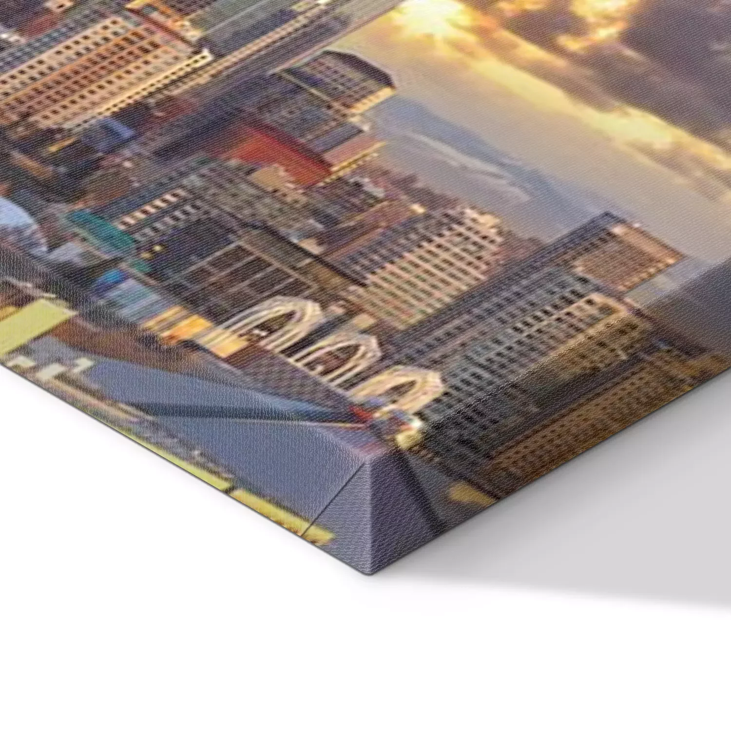 De print wordt aangebracht op hoogwaardig canvas dat op een schildersweefgetouw (spieraam) wordt gespannen. Omdat de print de zijranden bedekt, hoeft het ontwerp niet met een extra kader te worden omlijst. Wij raden ook composities aan die uit meerdere foto's bestaan en zo een coherente compositie vormen.