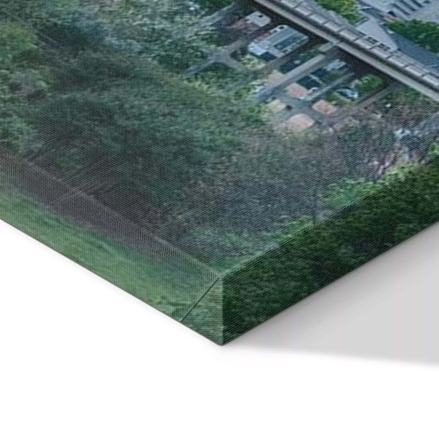 De print wordt aangebracht op hoogwaardig canvas dat op een schildersweefgetouw (spieraam) wordt gespannen. Omdat de print de zijranden bedekt, hoeft het ontwerp niet met een extra kader te worden omlijst. Wij raden ook composities aan die uit meerdere foto's bestaan en zo een coherente compositie vormen.