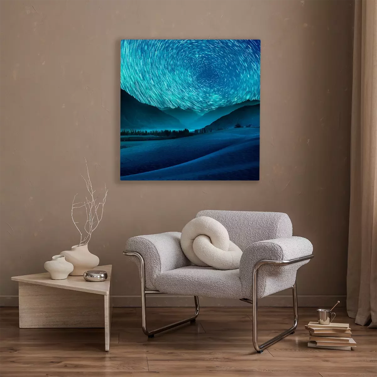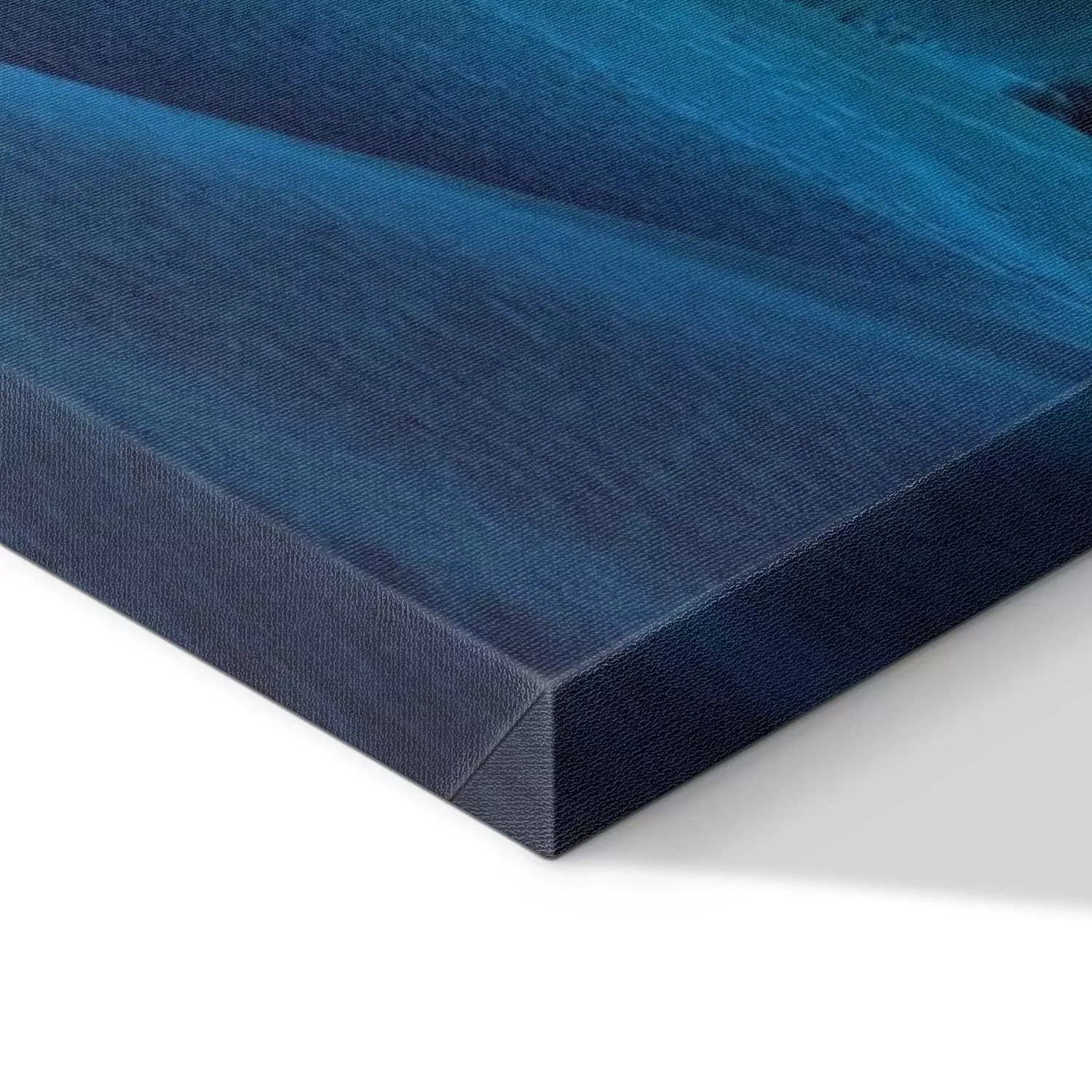 De print wordt aangebracht op hoogwaardig canvas dat op een schildersweefgetouw (spieraam) wordt gespannen. Omdat de print de zijranden bedekt, hoeft het ontwerp niet met een extra kader te worden omlijst. Wij raden ook composities aan die uit meerdere foto's bestaan en zo een coherente compositie vormen.