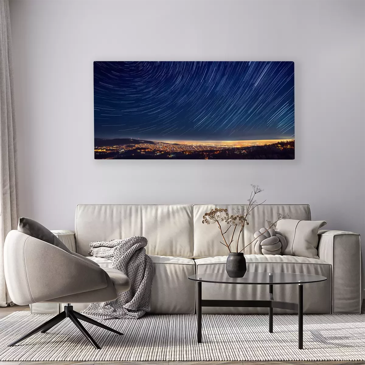 De print wordt aangebracht op hoogwaardig canvas dat op een schildersweefgetouw (spieraam) wordt gespannen. Omdat de print de zijranden bedekt, hoeft het ontwerp niet met een extra kader te worden omlijst. Wij raden ook composities aan die uit meerdere foto's bestaan en zo een coherente compositie vormen.