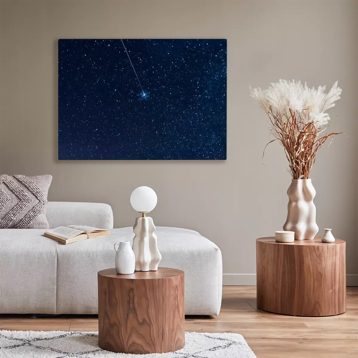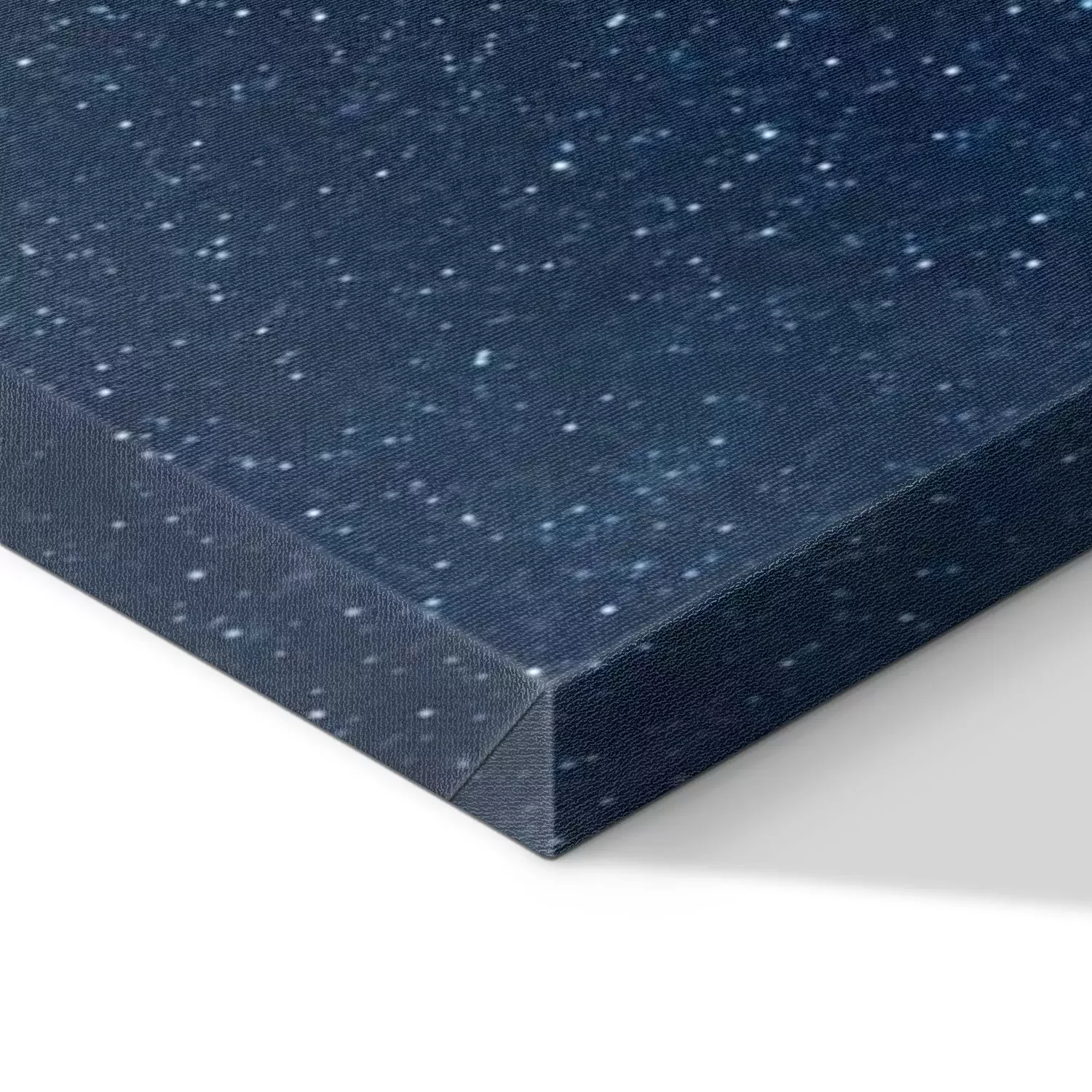 De print wordt aangebracht op hoogwaardig canvas dat op een schildersweefgetouw (spieraam) wordt gespannen. Omdat de print de zijranden bedekt, hoeft het ontwerp niet met een extra kader te worden omlijst. Wij raden ook composities aan die uit meerdere foto's bestaan en zo een coherente compositie vormen.