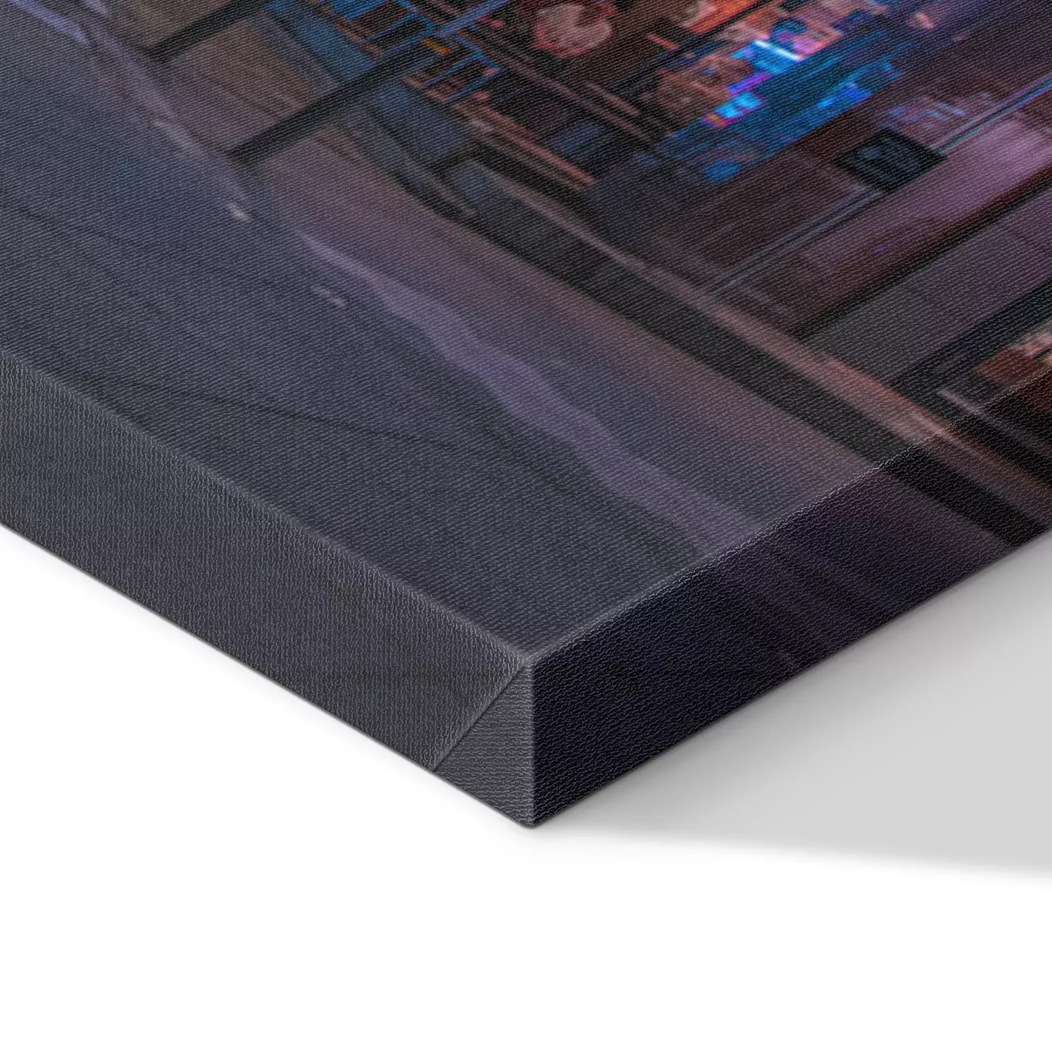 De print wordt aangebracht op hoogwaardig canvas dat op een schildersweefgetouw (spieraam) wordt gespannen. Omdat de print de zijranden bedekt, hoeft het ontwerp niet met een extra kader te worden omlijst. Wij raden ook composities aan die uit meerdere foto's bestaan en zo een coherente compositie vormen.