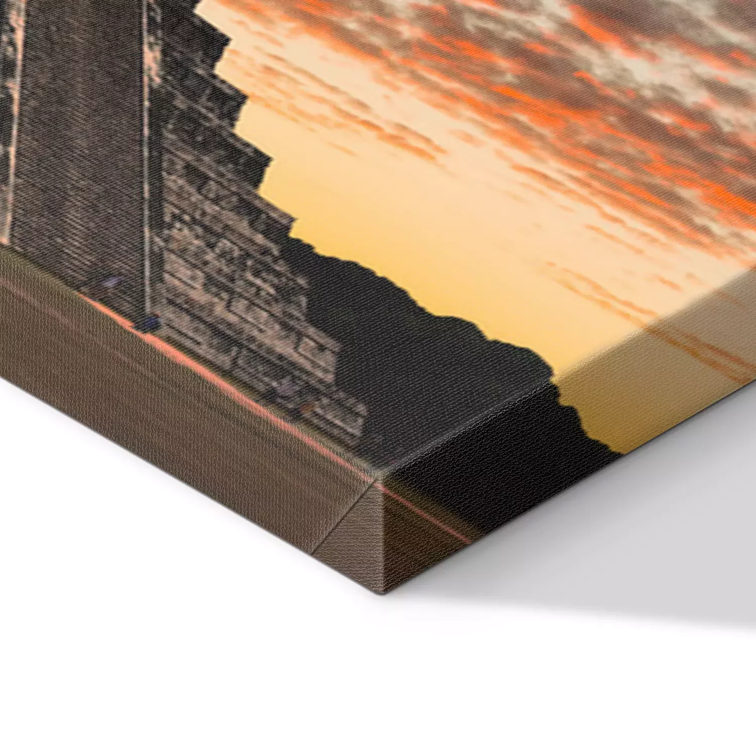 De print wordt aangebracht op hoogwaardig canvas dat op een schildersweefgetouw (spieraam) wordt gespannen. Omdat de print de zijranden bedekt, hoeft het ontwerp niet met een extra kader te worden omlijst. Wij raden ook composities aan die uit meerdere foto's bestaan en zo een coherente compositie vormen.