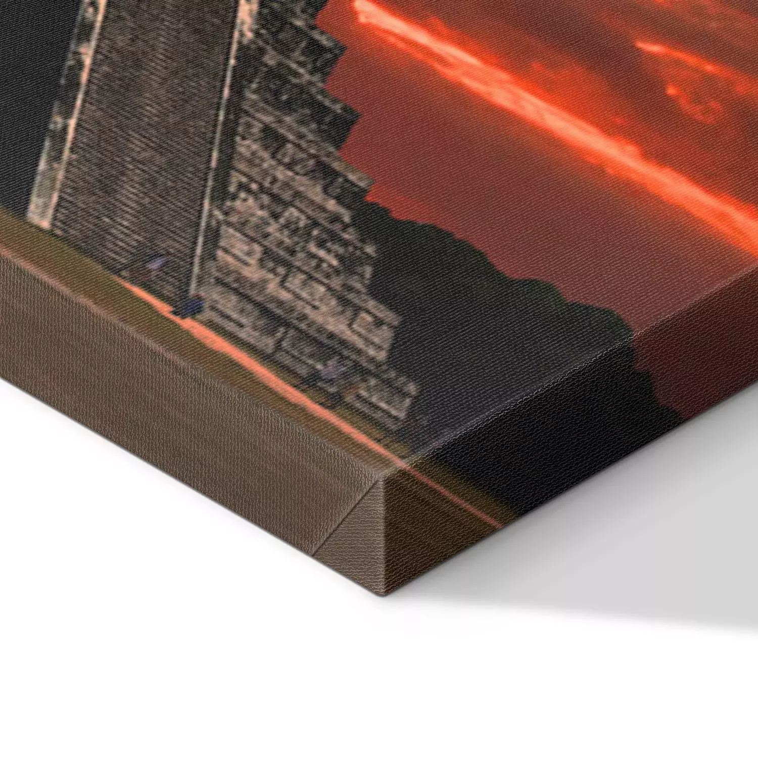 De print wordt aangebracht op hoogwaardig canvas dat op een schildersweefgetouw (spieraam) wordt gespannen. Omdat de print de zijranden bedekt, hoeft het ontwerp niet met een extra kader te worden omlijst. Wij raden ook composities aan die uit meerdere foto's bestaan en zo een coherente compositie vormen.