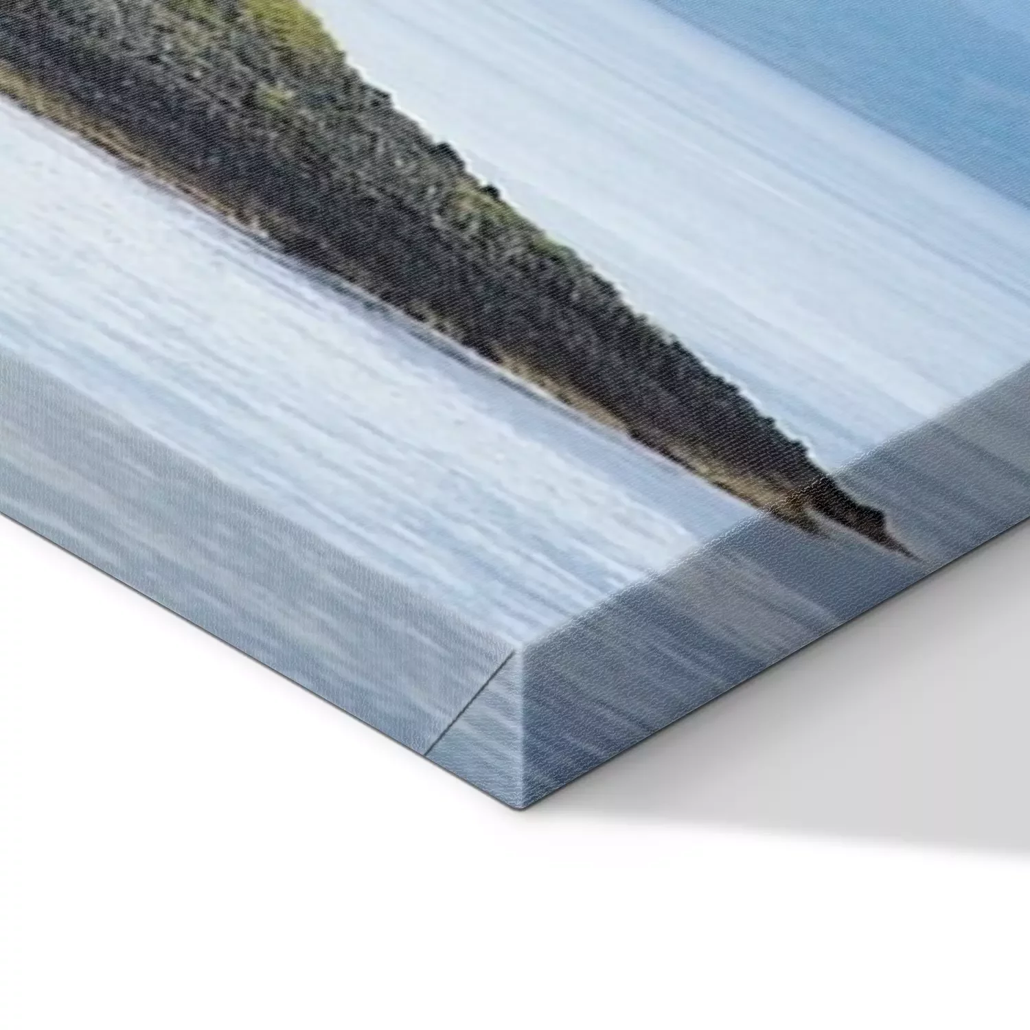 De print wordt aangebracht op hoogwaardig canvas dat op een schildersweefgetouw (spieraam) wordt gespannen. Omdat de print de zijranden bedekt, hoeft het ontwerp niet met een extra kader te worden omlijst. Wij raden ook composities aan die uit meerdere foto's bestaan en zo een coherente compositie vormen.