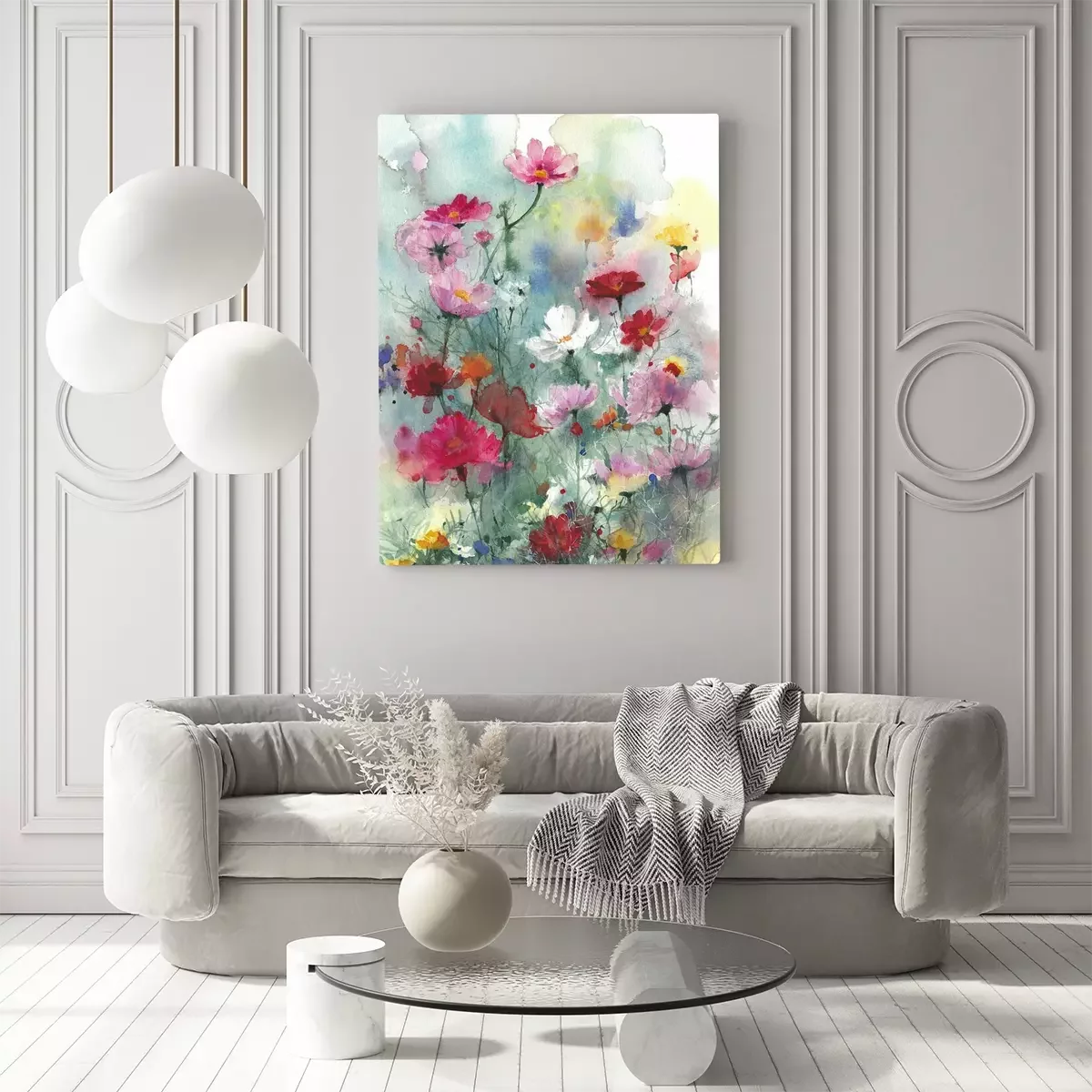 Canvas: De waterverf van Wildflowerszomer kleurrijke bloemen het schilderen illustratie die op witte achtergrond wordt geïsoleerd