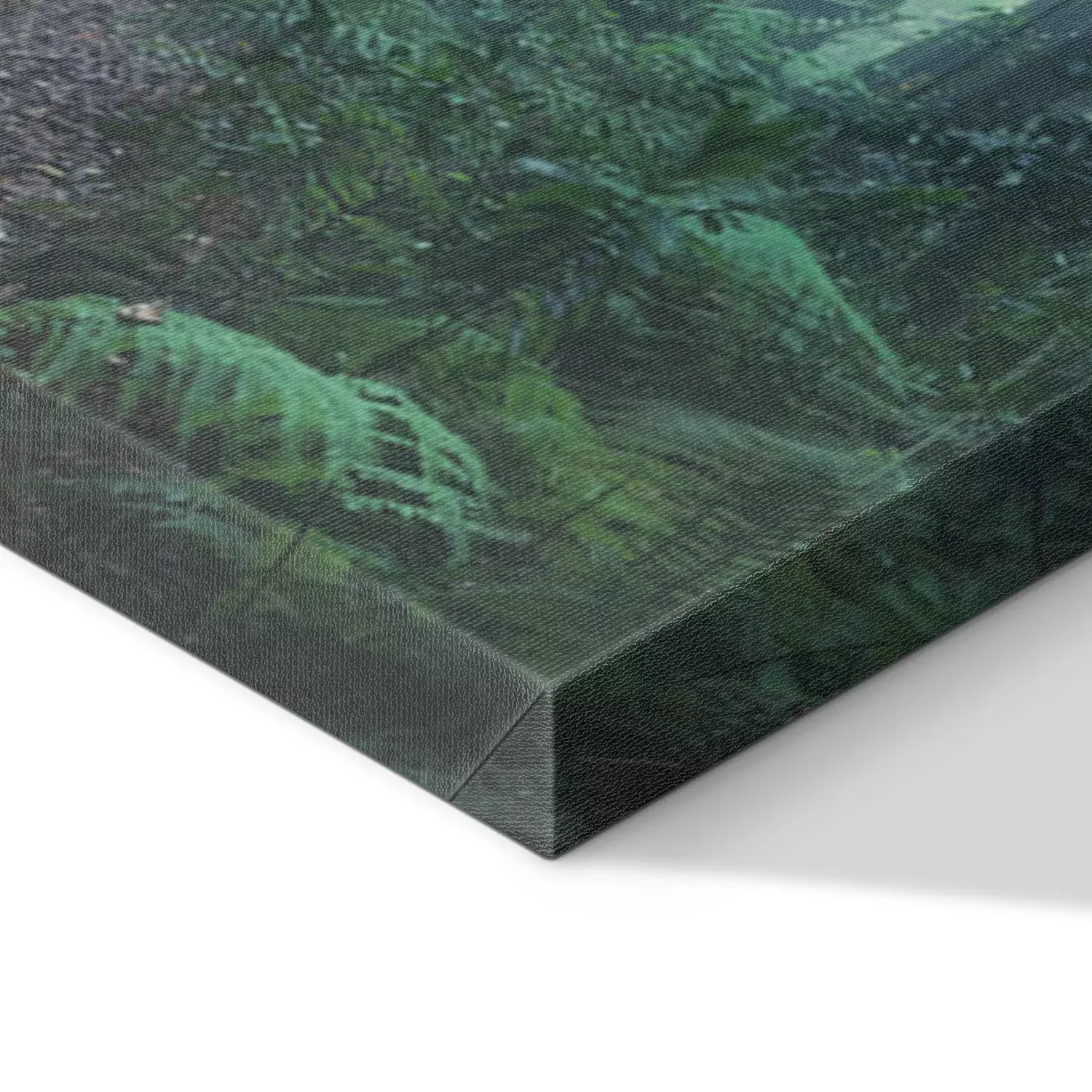 De print wordt aangebracht op hoogwaardig canvas dat op een schildersweefgetouw (spieraam) wordt gespannen. Omdat de print de zijranden bedekt, hoeft het ontwerp niet met een extra kader te worden omlijst. Wij raden ook composities aan die uit meerdere foto's bestaan en zo een coherente compositie vormen.