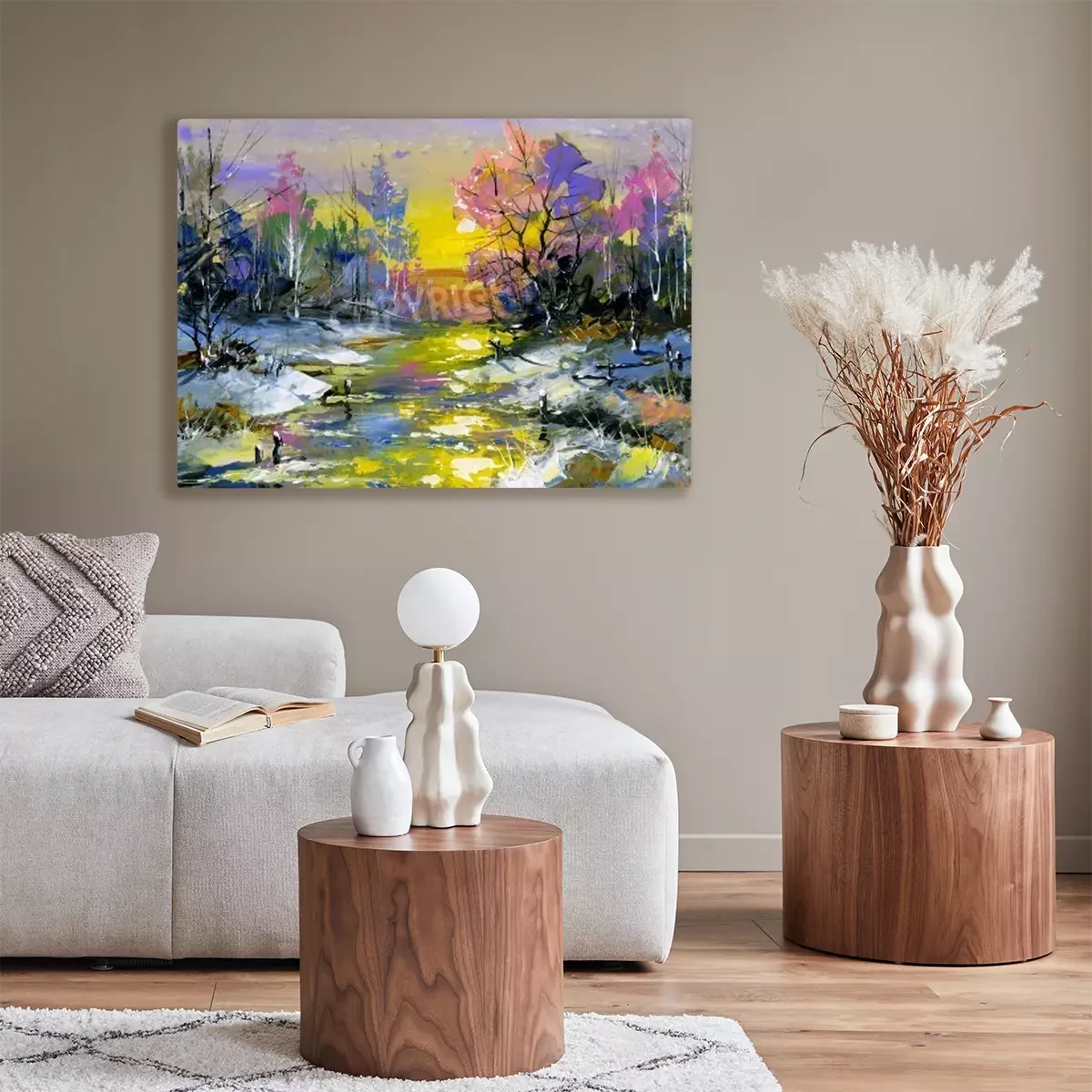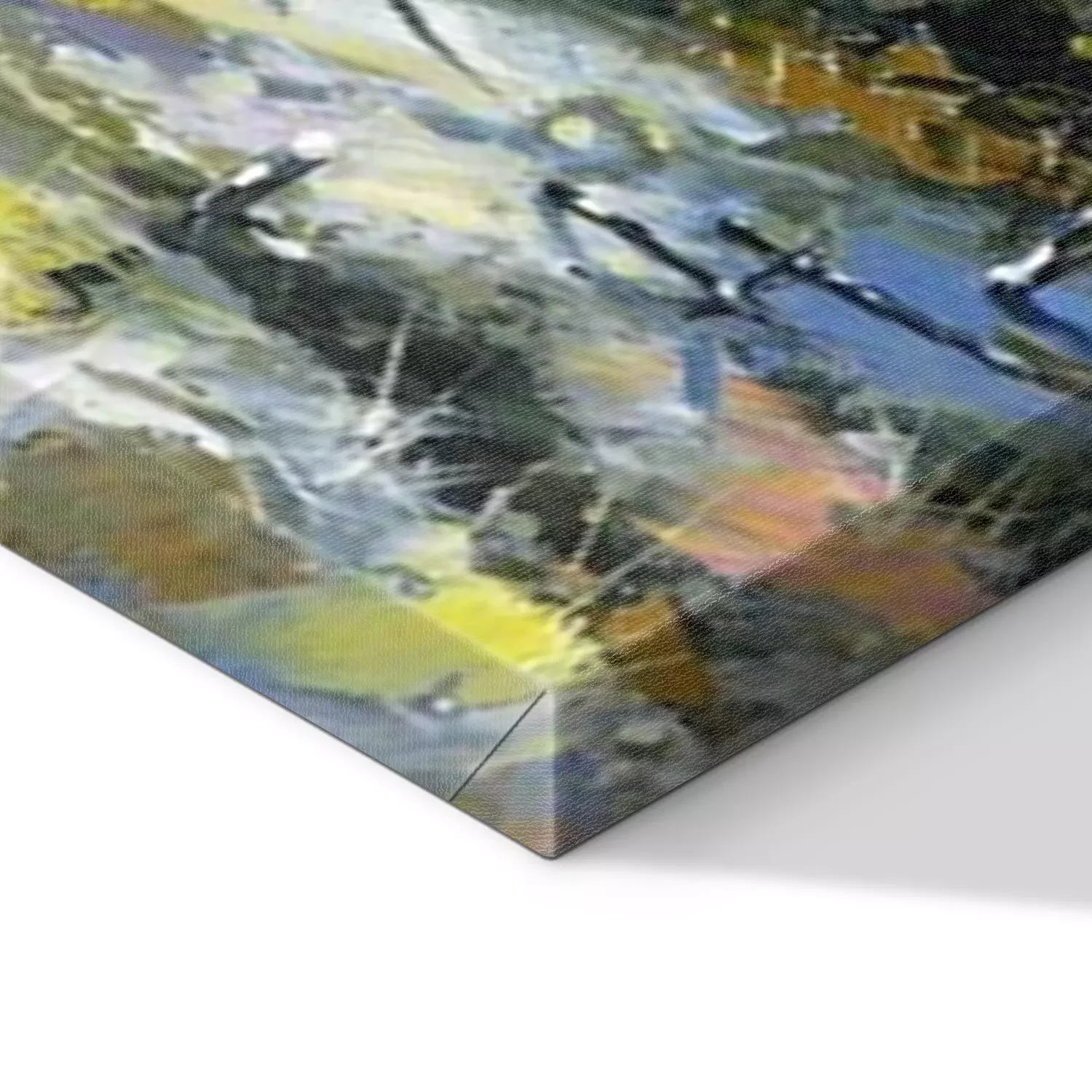De print wordt aangebracht op hoogwaardig canvas dat op een schildersweefgetouw (spieraam) wordt gespannen. Omdat de print de zijranden bedekt, hoeft het ontwerp niet met een extra kader te worden omlijst. Wij raden ook composities aan die uit meerdere foto's bestaan en zo een coherente compositie vormen.