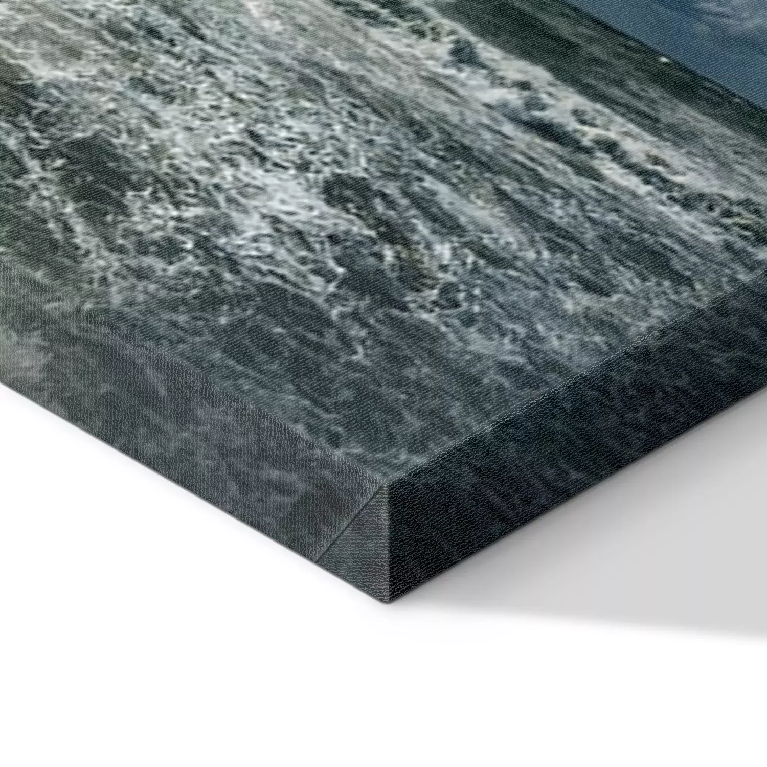 De print wordt aangebracht op hoogwaardig canvas dat op een schildersweefgetouw (spieraam) wordt gespannen. Omdat de print de zijranden bedekt, hoeft het ontwerp niet met een extra kader te worden omlijst. Wij raden ook composities aan die uit meerdere foto's bestaan en zo een coherente compositie vormen.