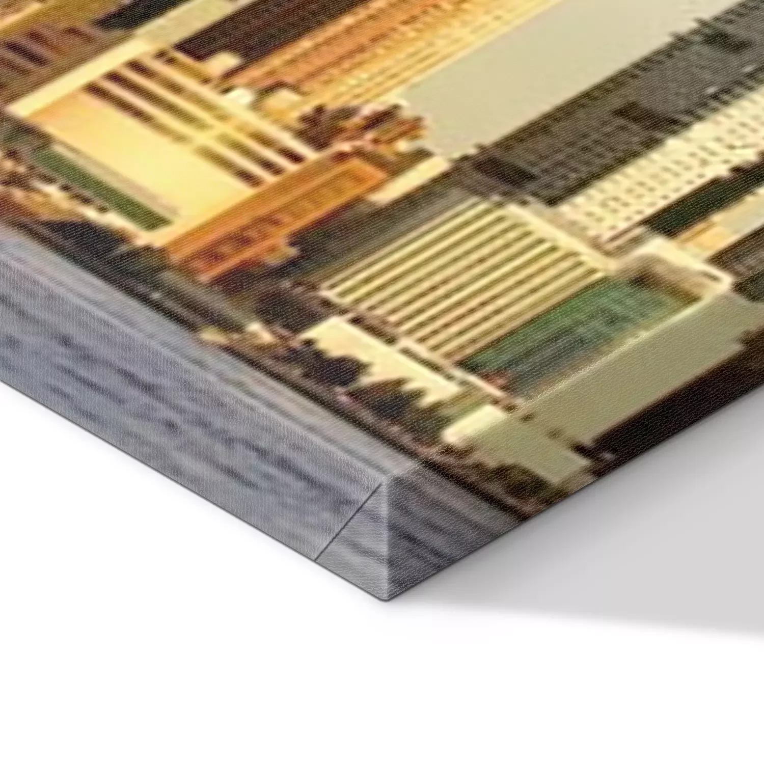 De print wordt aangebracht op hoogwaardig canvas dat op een schildersweefgetouw (spieraam) wordt gespannen. Omdat de print de zijranden bedekt, hoeft het ontwerp niet met een extra kader te worden omlijst. Wij raden ook composities aan die uit meerdere foto's bestaan en zo een coherente compositie vormen.