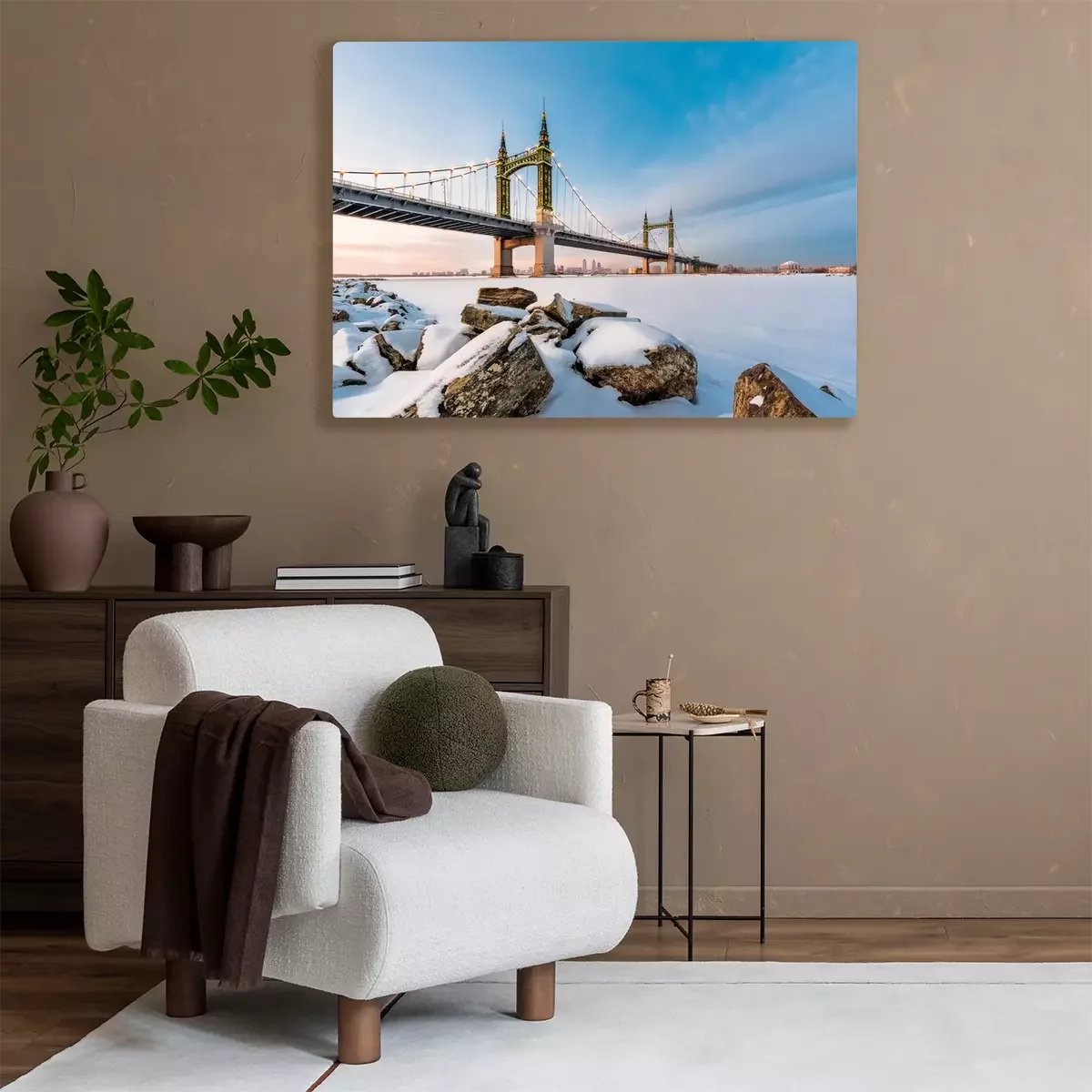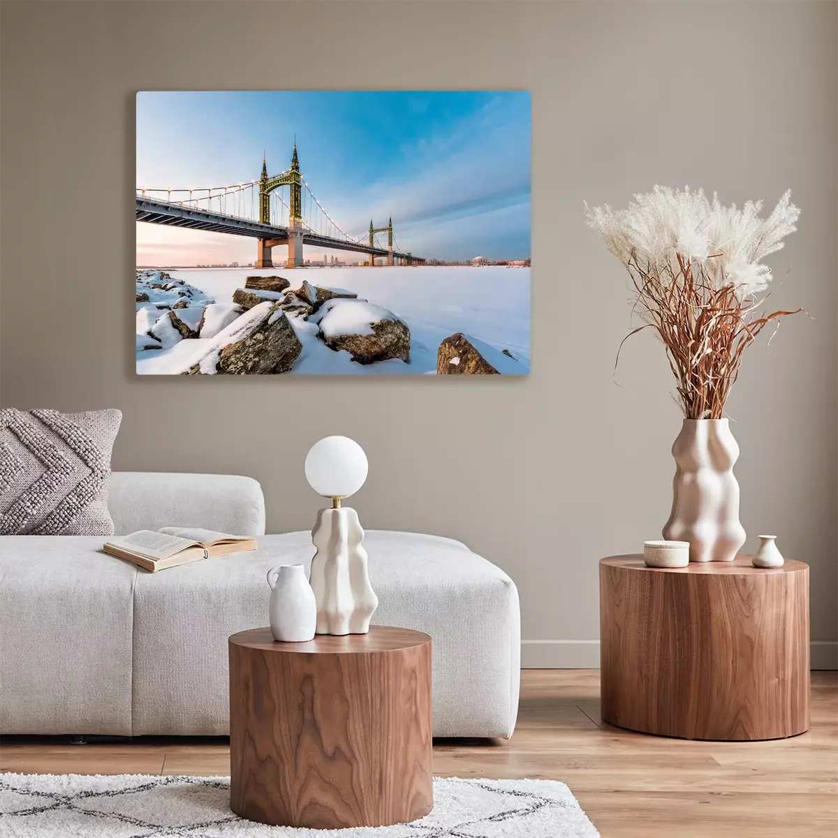 De print wordt aangebracht op hoogwaardig canvas dat op een schildersweefgetouw (spieraam) wordt gespannen. Omdat de print de zijranden bedekt, hoeft het ontwerp niet met een extra kader te worden omlijst. Wij raden ook composities aan die uit meerdere foto's bestaan en zo een coherente compositie vormen.