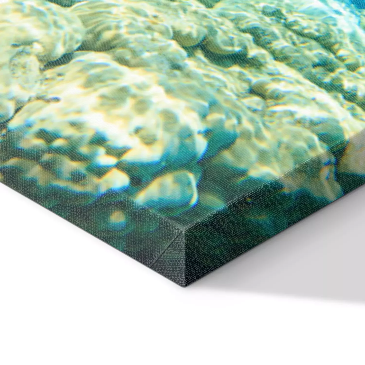 De print wordt aangebracht op hoogwaardig canvas dat op een schildersweefgetouw (spieraam) wordt gespannen. Omdat de print de zijranden bedekt, hoeft het ontwerp niet met een extra kader te worden omlijst. Wij raden ook composities aan die uit meerdere foto's bestaan en zo een coherente compositie vormen.