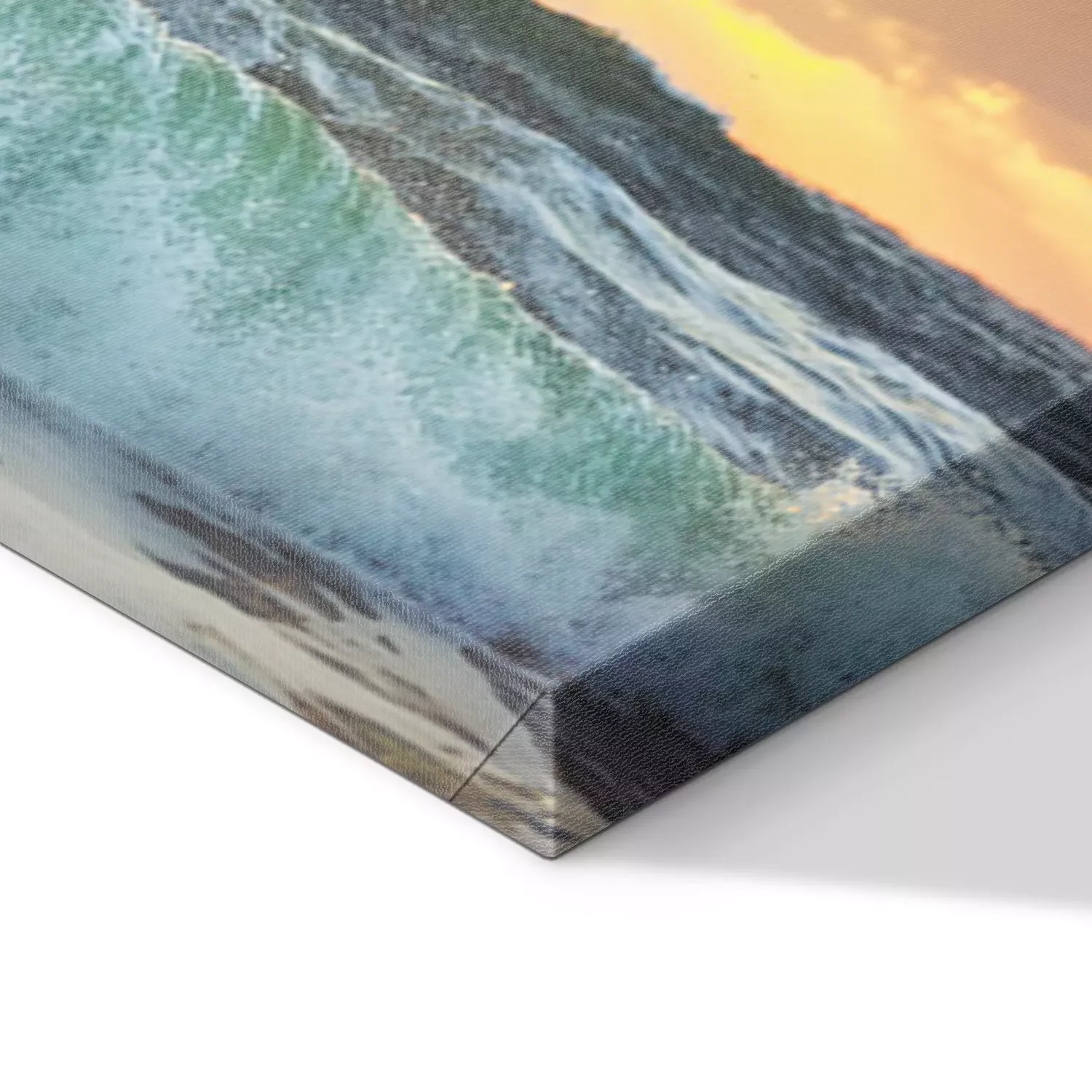 De print wordt aangebracht op hoogwaardig canvas dat op een schildersweefgetouw (spieraam) wordt gespannen. Omdat de print de zijranden bedekt, hoeft het ontwerp niet met een extra kader te worden omlijst. Wij raden ook composities aan die uit meerdere foto's bestaan en zo een coherente compositie vormen.