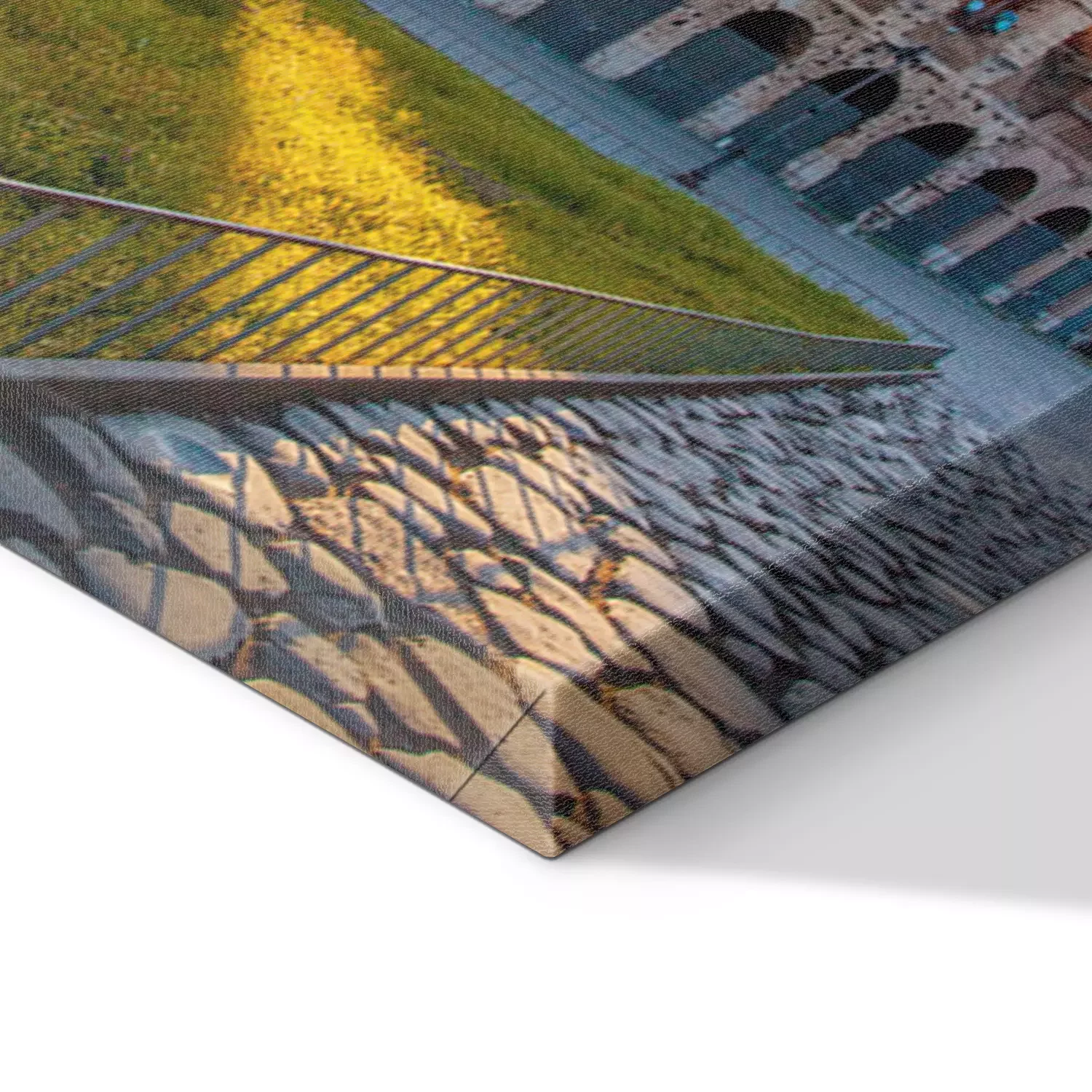 De print wordt aangebracht op hoogwaardig canvas dat op een schildersweefgetouw (spieraam) wordt gespannen. Omdat de print de zijranden bedekt, hoeft het ontwerp niet met een extra kader te worden omlijst. Wij raden ook composities aan die uit meerdere foto's bestaan en zo een coherente compositie vormen.