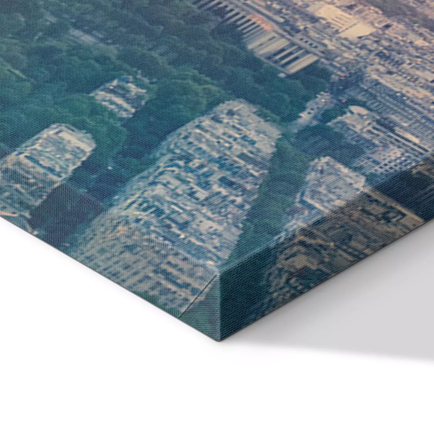 De print wordt aangebracht op hoogwaardig canvas dat op een schildersweefgetouw (spieraam) wordt gespannen. Omdat de print de zijranden bedekt, hoeft het ontwerp niet met een extra kader te worden omlijst. Wij raden ook composities aan die uit meerdere foto's bestaan en zo een coherente compositie vormen.