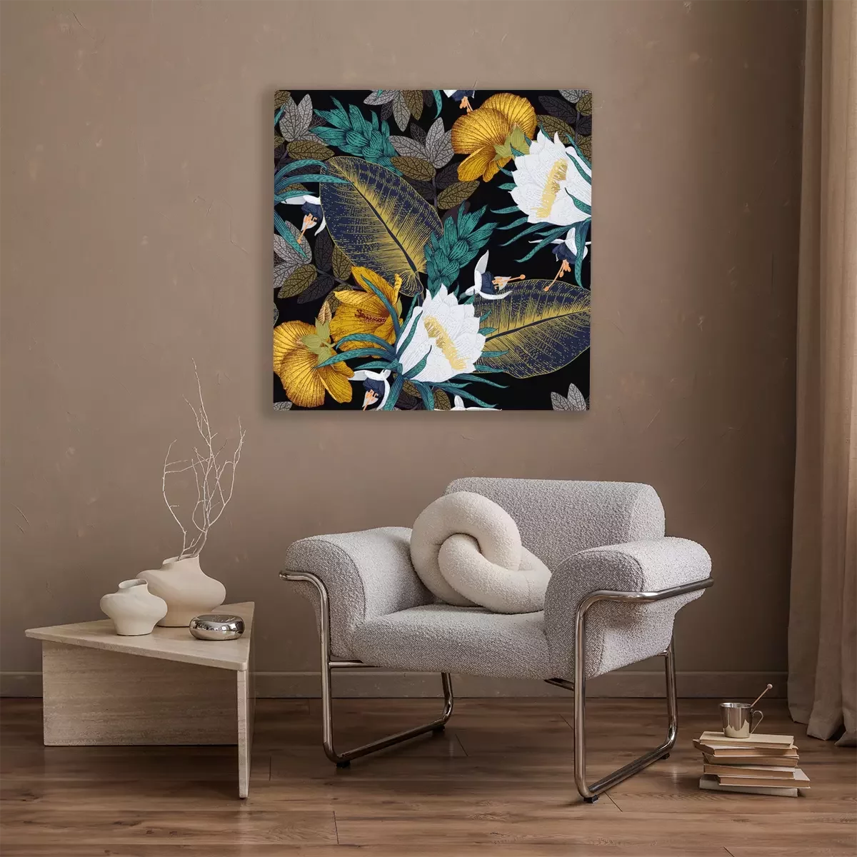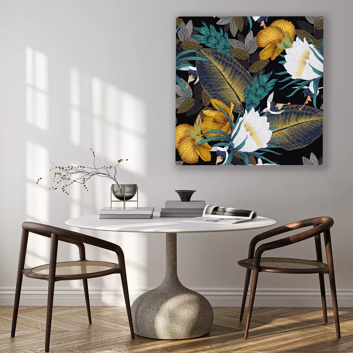 De print wordt aangebracht op hoogwaardig canvas dat op een schildersweefgetouw (spieraam) wordt gespannen. Omdat de print de zijranden bedekt, hoeft het ontwerp niet met een extra kader te worden omlijst. Wij raden ook composities aan die uit meerdere foto's bestaan en zo een coherente compositie vormen.