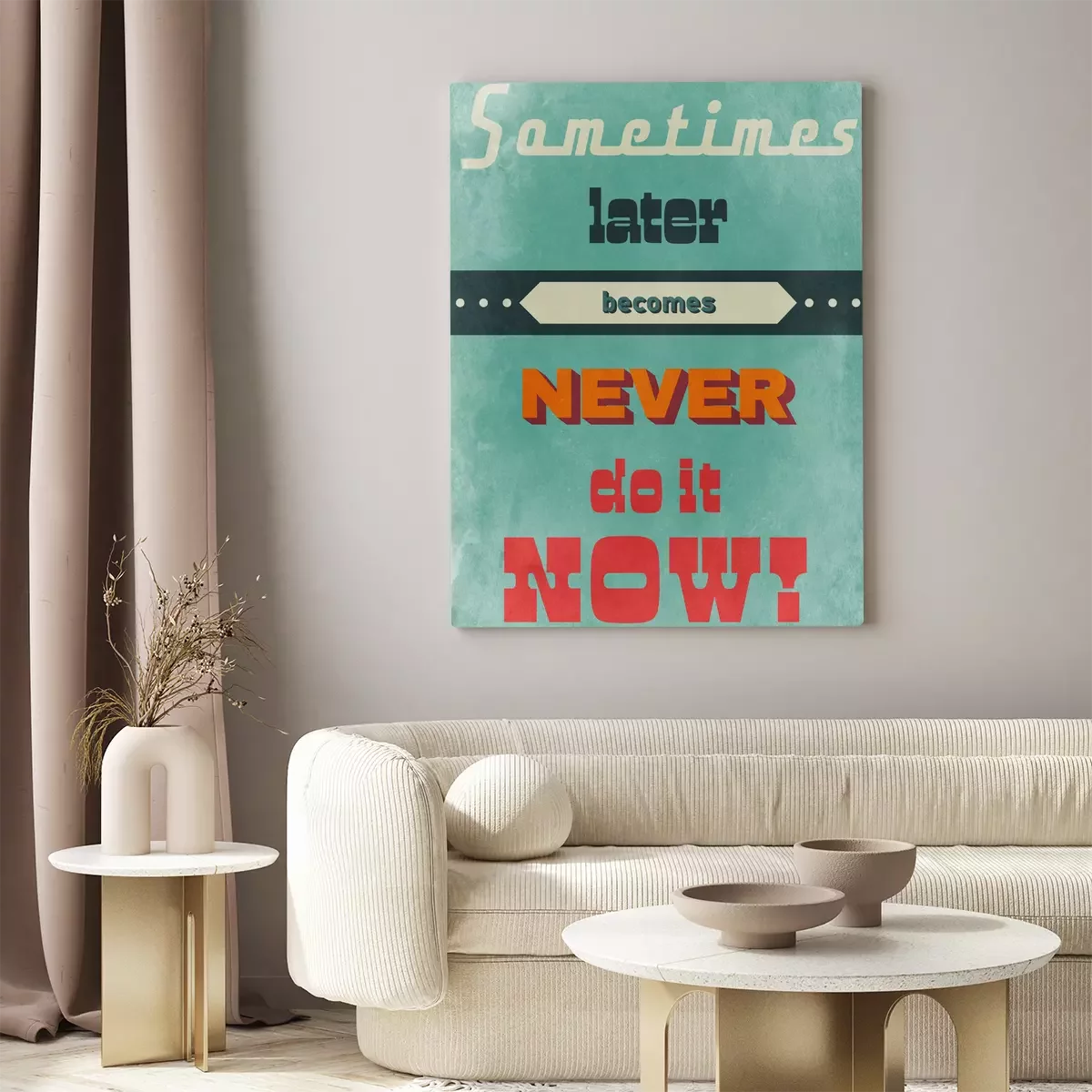 Decoratieve inscriptie "nooit uitstellen"