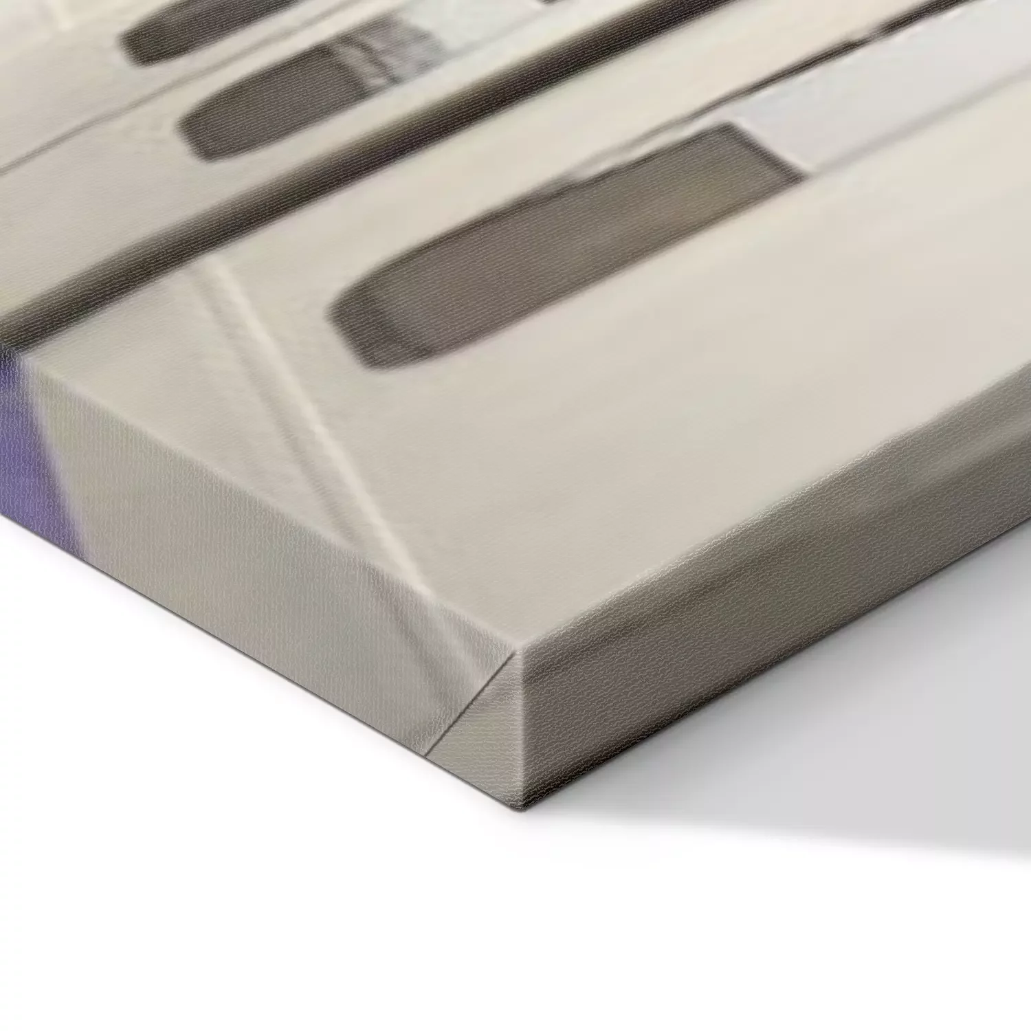 De print wordt aangebracht op hoogwaardig canvas dat op een schildersweefgetouw (spieraam) wordt gespannen. Omdat de print de zijranden bedekt, hoeft het ontwerp niet met een extra kader te worden omlijst. Wij raden ook composities aan die uit meerdere foto's bestaan en zo een coherente compositie vormen.