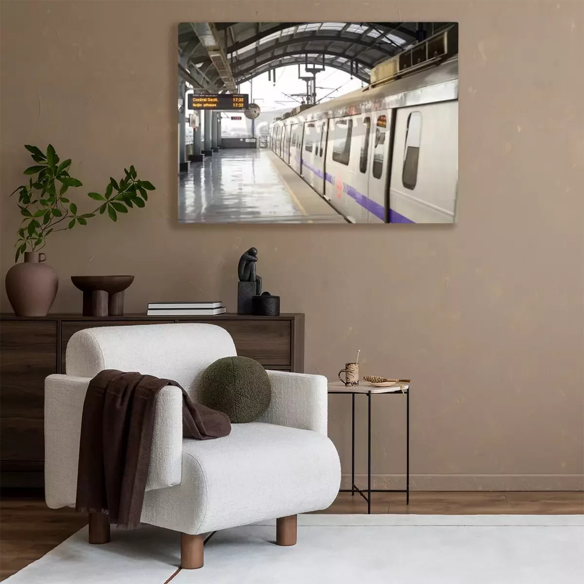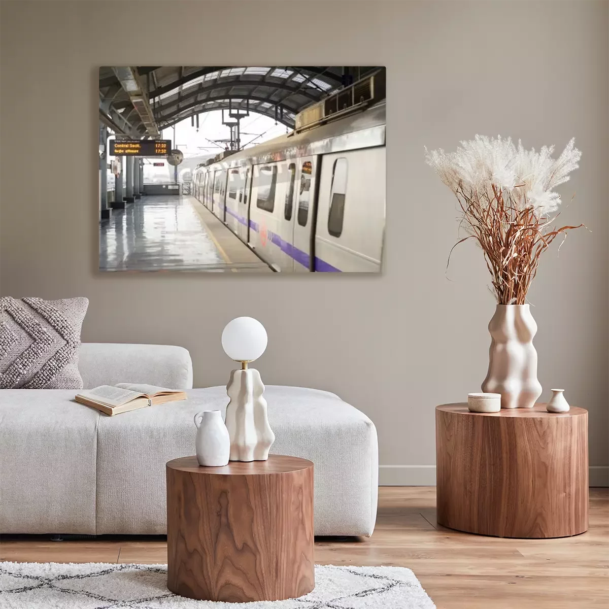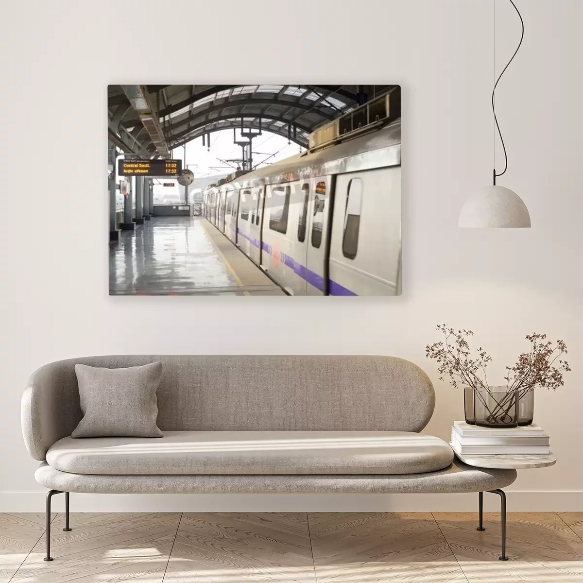 Canvas: Delhi, India - March 03, 2012: Delhi Metro station in Delhi. Delhi Metro network consists of six lines with a total length of 189.63 kilometres (117.83 mi) with 142 stations