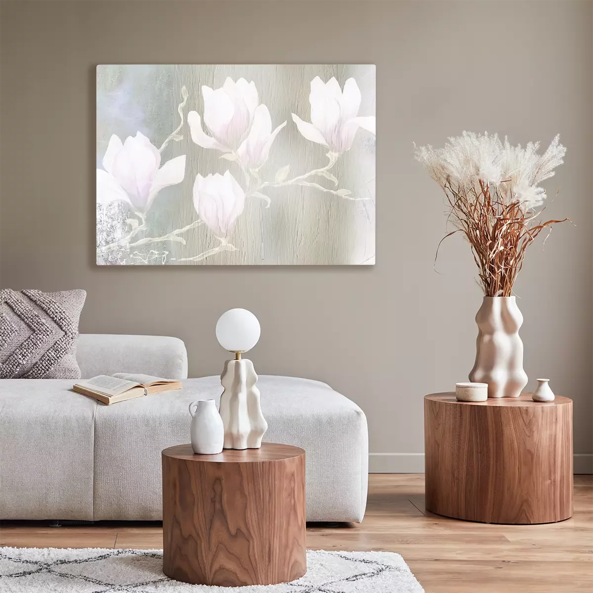 Delicate lichte magnolia's op een gestructureerde achtergrond