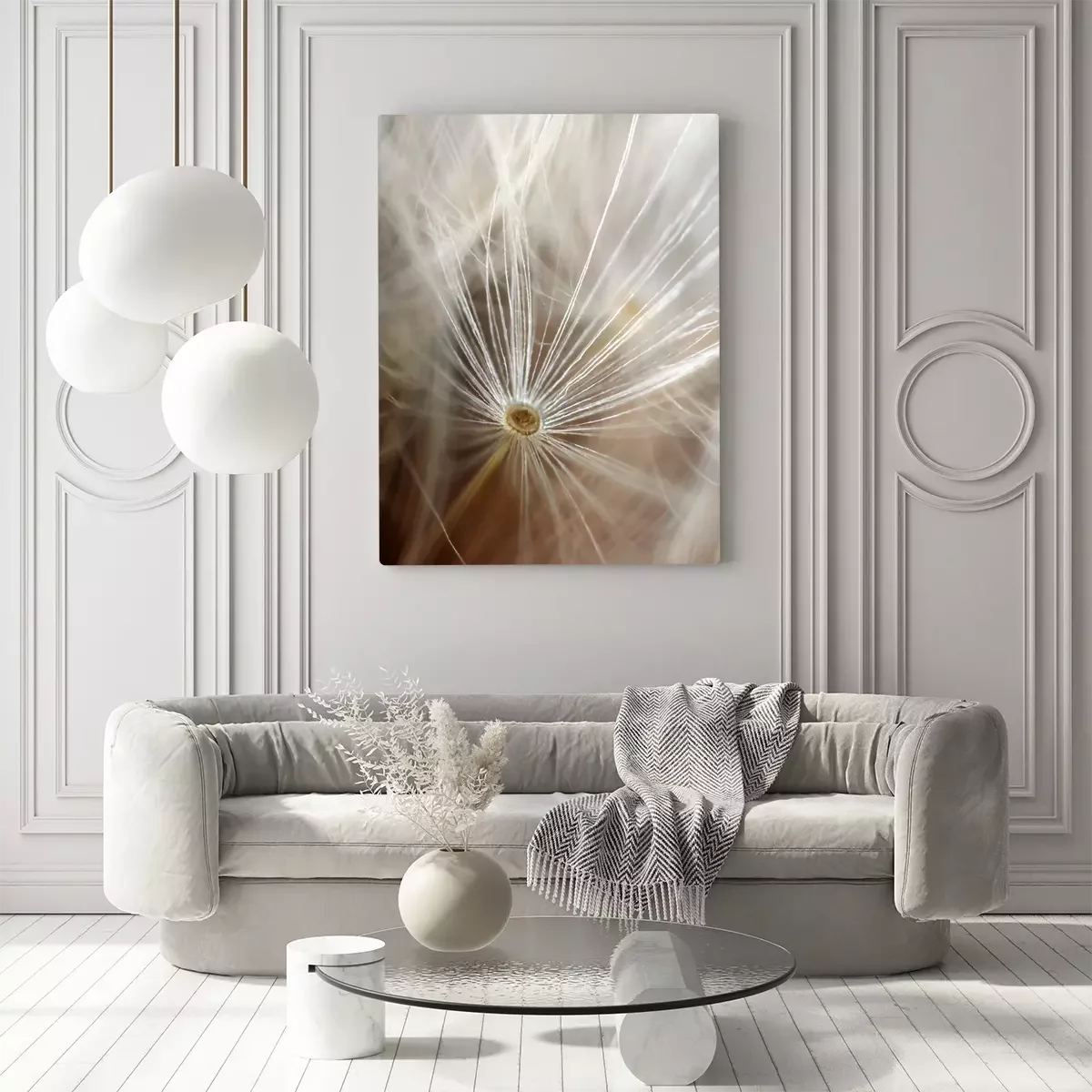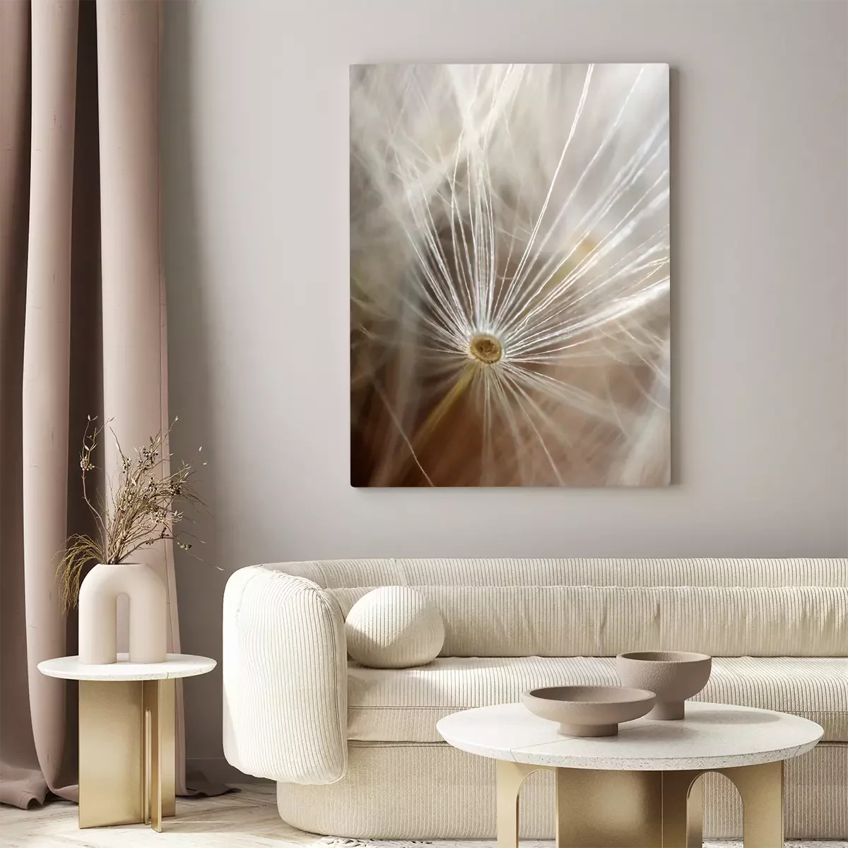 Delicate paardenbloemvezels tegen een wazige achtergrond