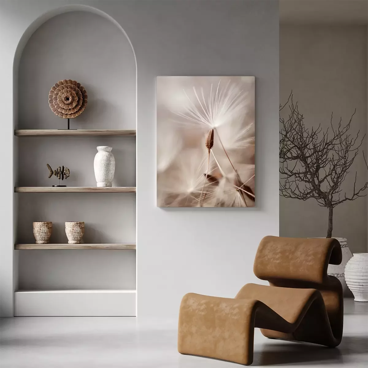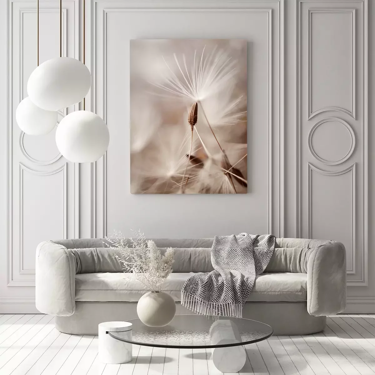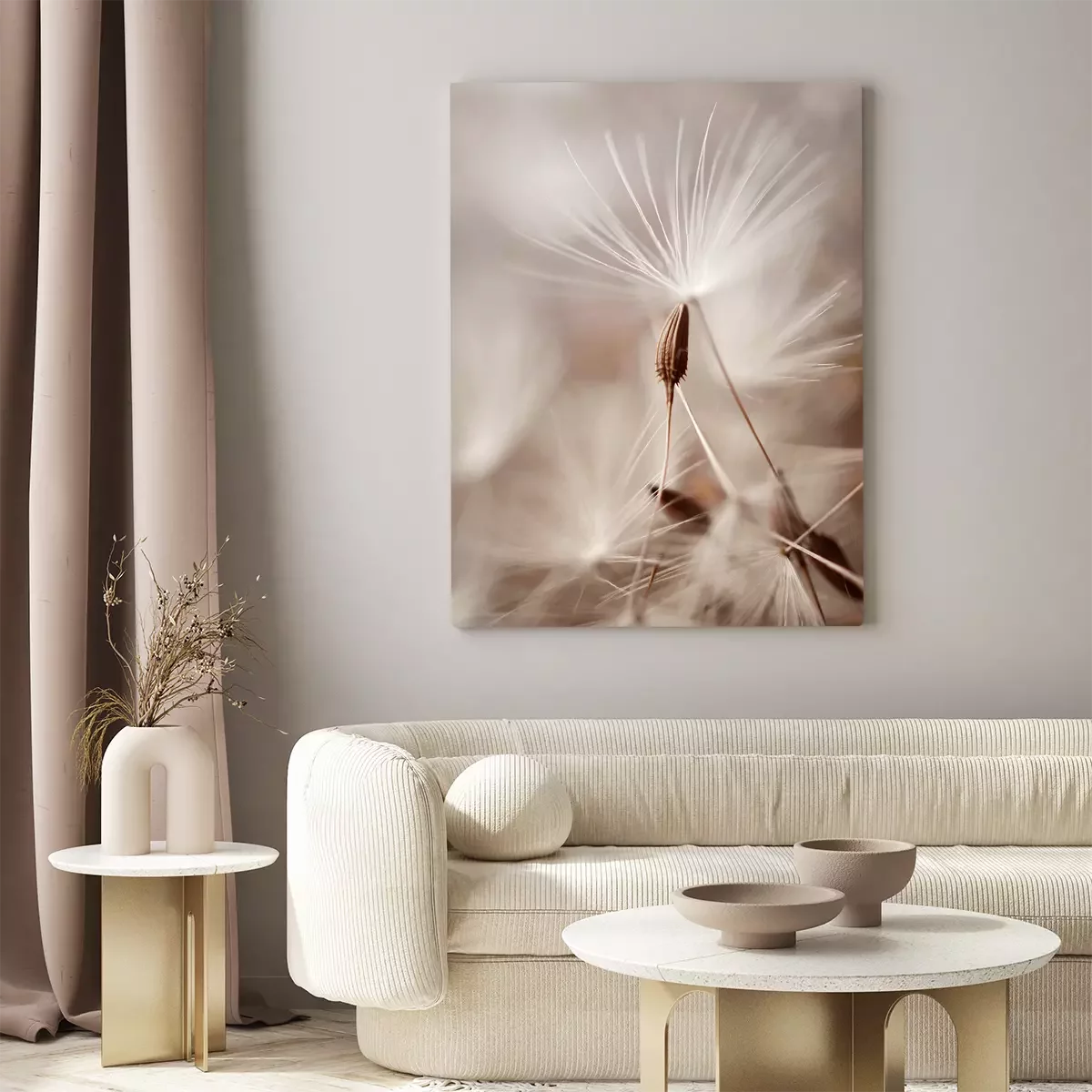 Delicate paardenbloemzaadjes op een beige achtergrond