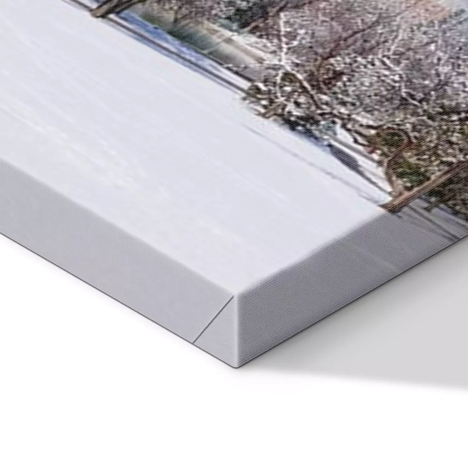 De print wordt aangebracht op hoogwaardig canvas dat op een schildersweefgetouw (spieraam) wordt gespannen. Omdat de print de zijranden bedekt, hoeft het ontwerp niet met een extra kader te worden omlijst. Wij raden ook composities aan die uit meerdere foto's bestaan en zo een coherente compositie vormen.