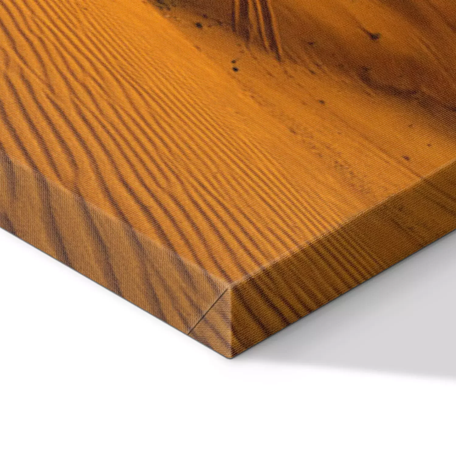 De print wordt aangebracht op hoogwaardig canvas dat op een schildersweefgetouw (spieraam) wordt gespannen. Omdat de print de zijranden bedekt, hoeft het ontwerp niet met een extra kader te worden omlijst. Wij raden ook composities aan die uit meerdere foto's bestaan en zo een coherente compositie vormen.