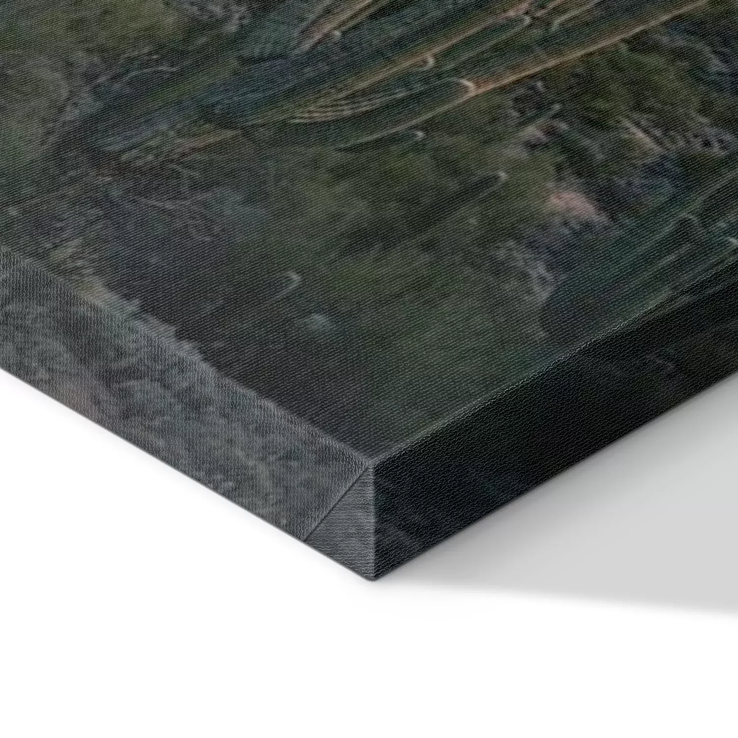 De print wordt aangebracht op hoogwaardig canvas dat op een schildersweefgetouw (spieraam) wordt gespannen. Omdat de print de zijranden bedekt, hoeft het ontwerp niet met een extra kader te worden omlijst. Wij raden ook composities aan die uit meerdere foto's bestaan en zo een coherente compositie vormen.