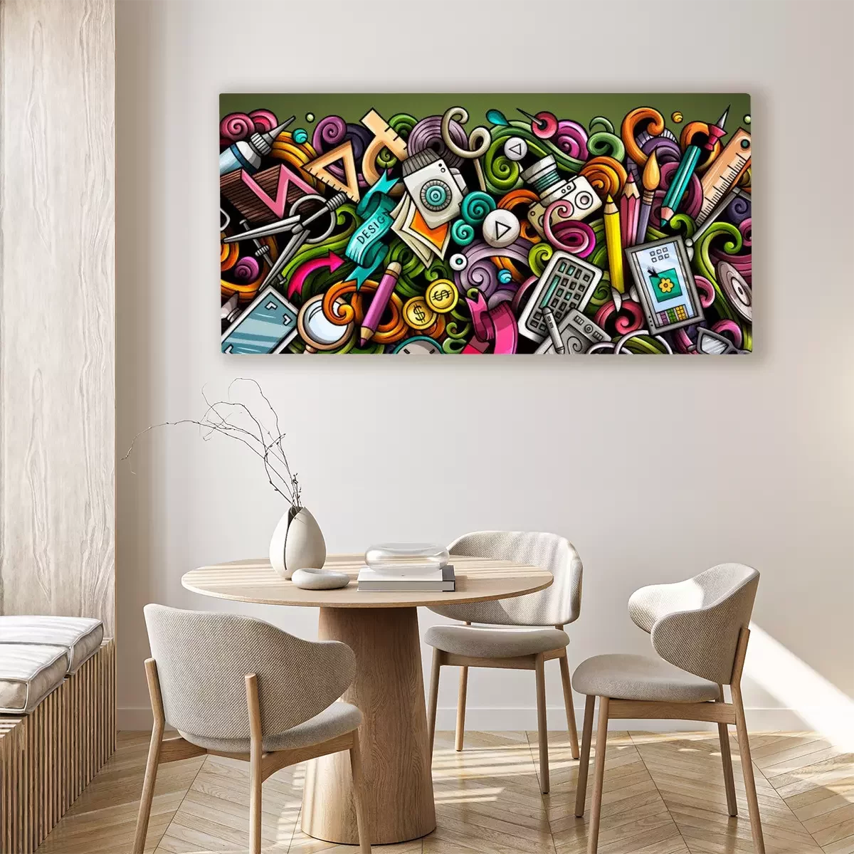 Canvas Designer hand drawn doodle banner. Cartoon detailed flyer.