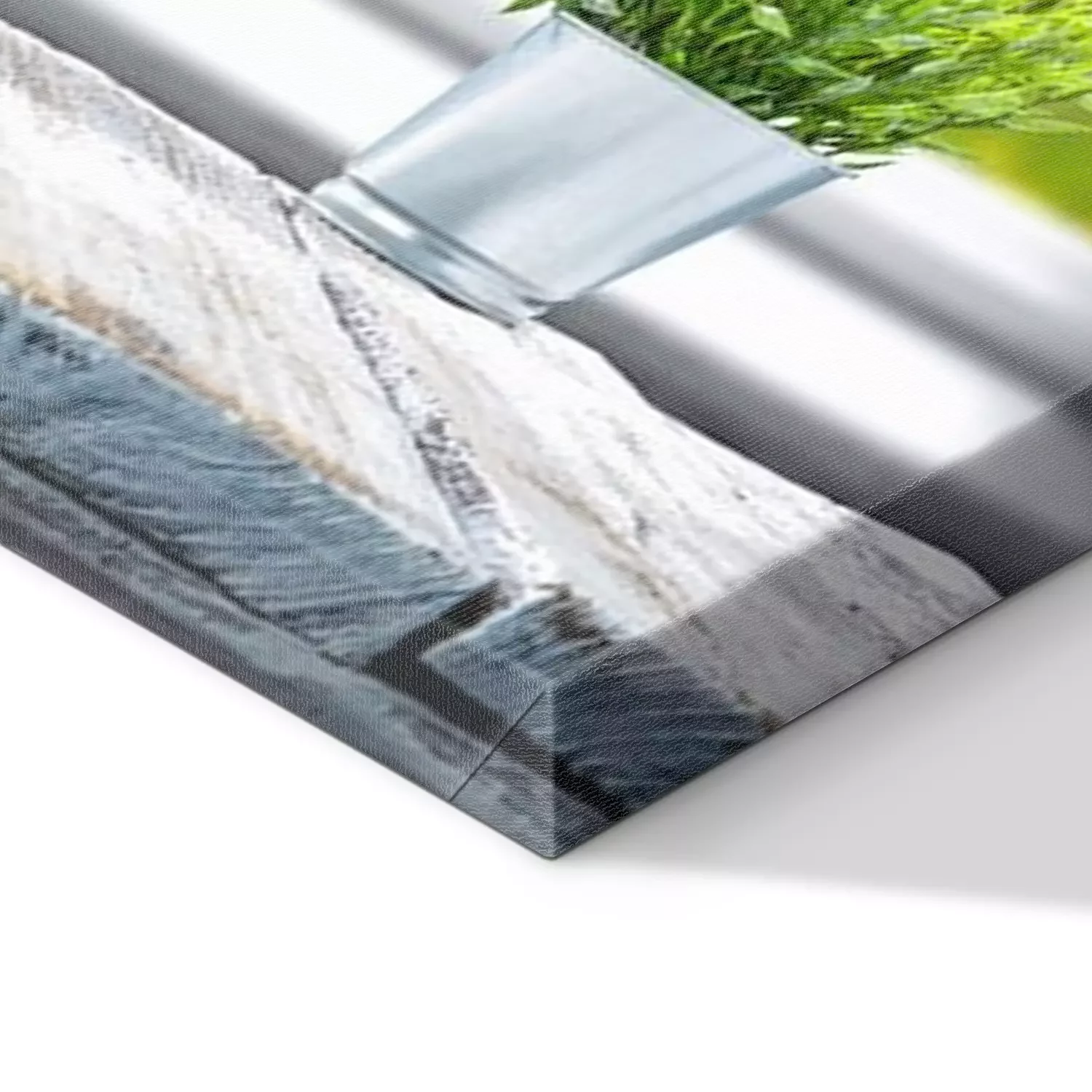 De print wordt aangebracht op hoogwaardig canvas dat op een schildersweefgetouw (spieraam) wordt gespannen. Omdat de print de zijranden bedekt, hoeft het ontwerp niet met een extra kader te worden omlijst. Wij raden ook composities aan die uit meerdere foto's bestaan en zo een coherente compositie vormen.
