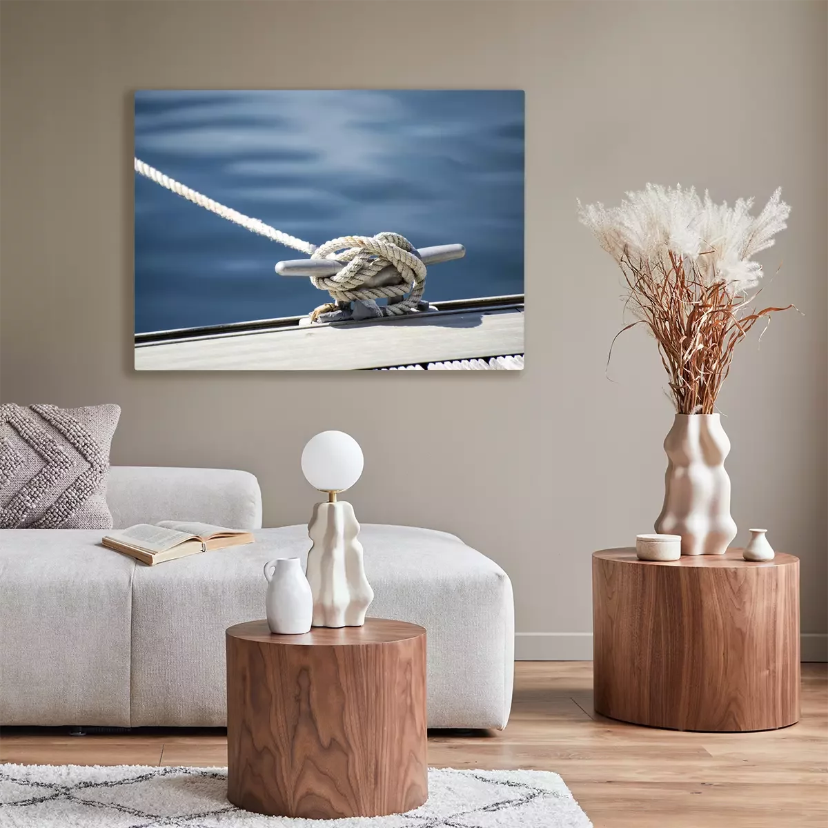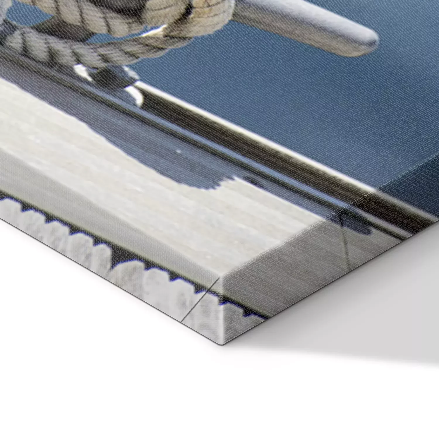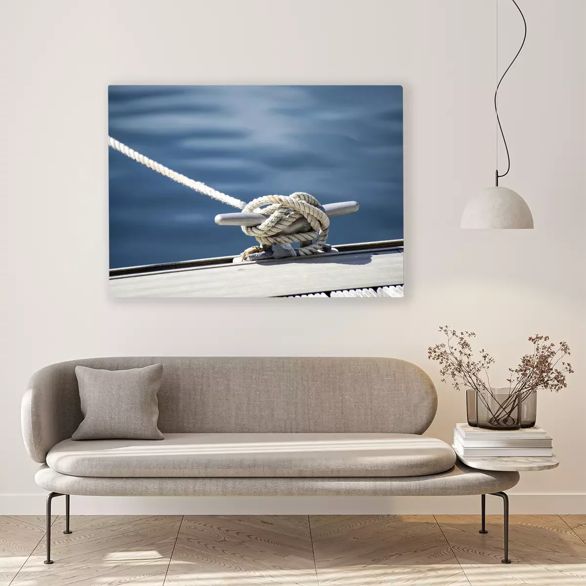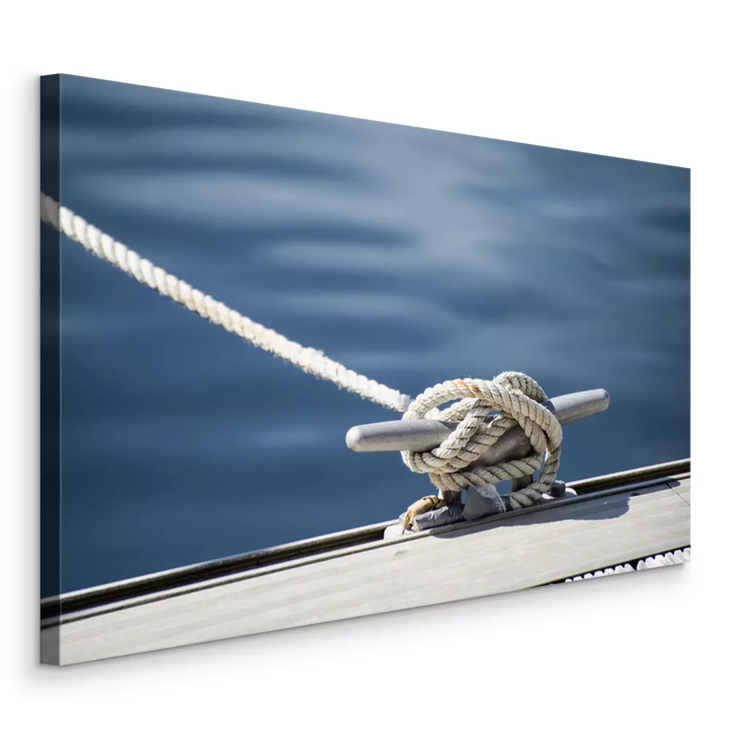 Canvas: Detail foto van jachtkabel cleat op zeilboot dek
