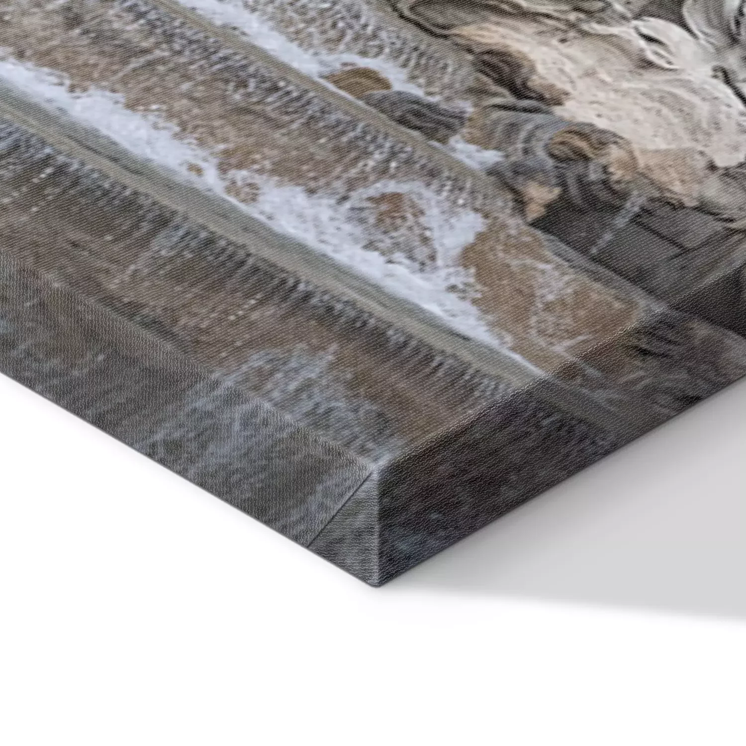 De print wordt aangebracht op hoogwaardig canvas dat op een schildersweefgetouw (spieraam) wordt gespannen. Omdat de print de zijranden bedekt, hoeft het ontwerp niet met een extra kader te worden omlijst. Wij raden ook composities aan die uit meerdere foto's bestaan en zo een coherente compositie vormen.