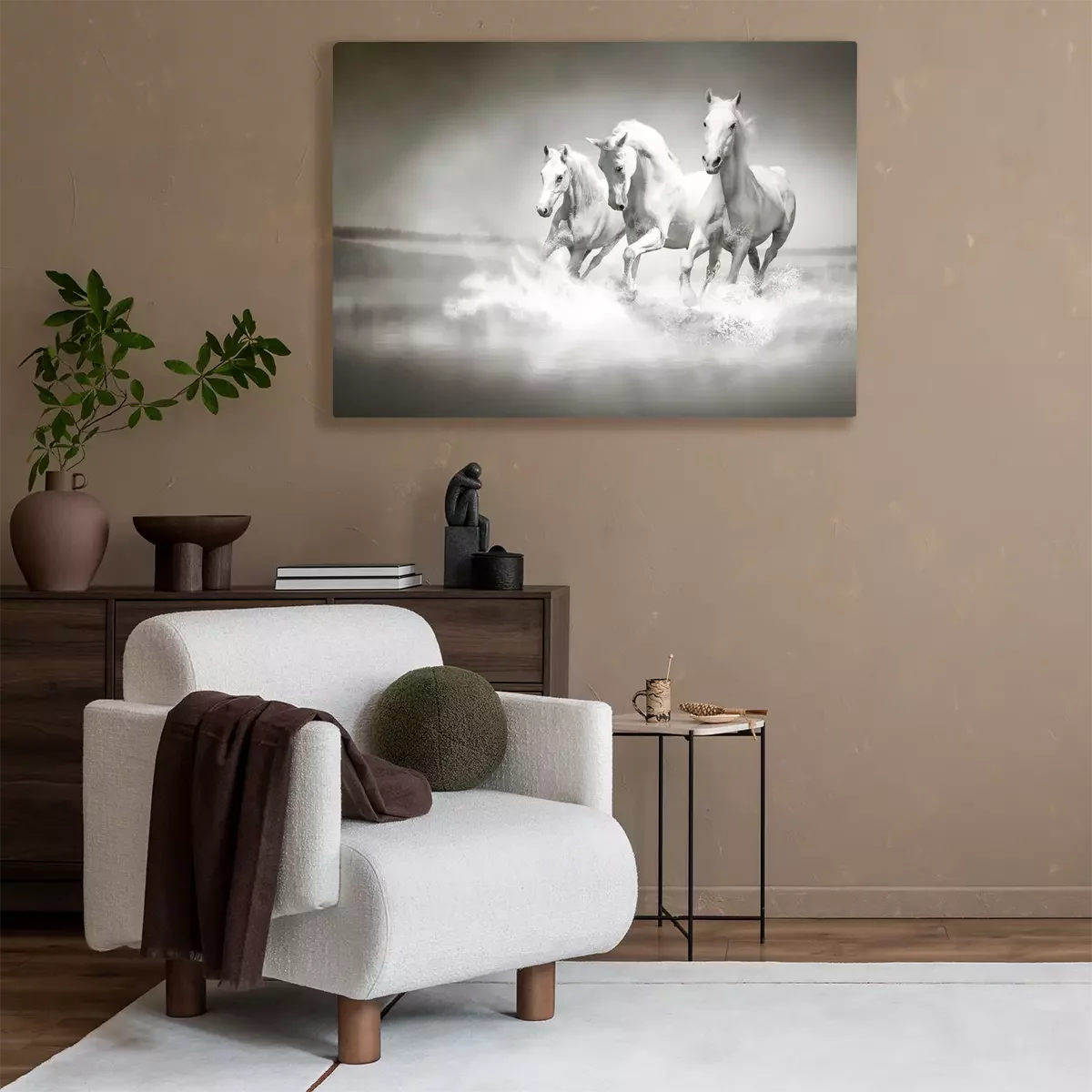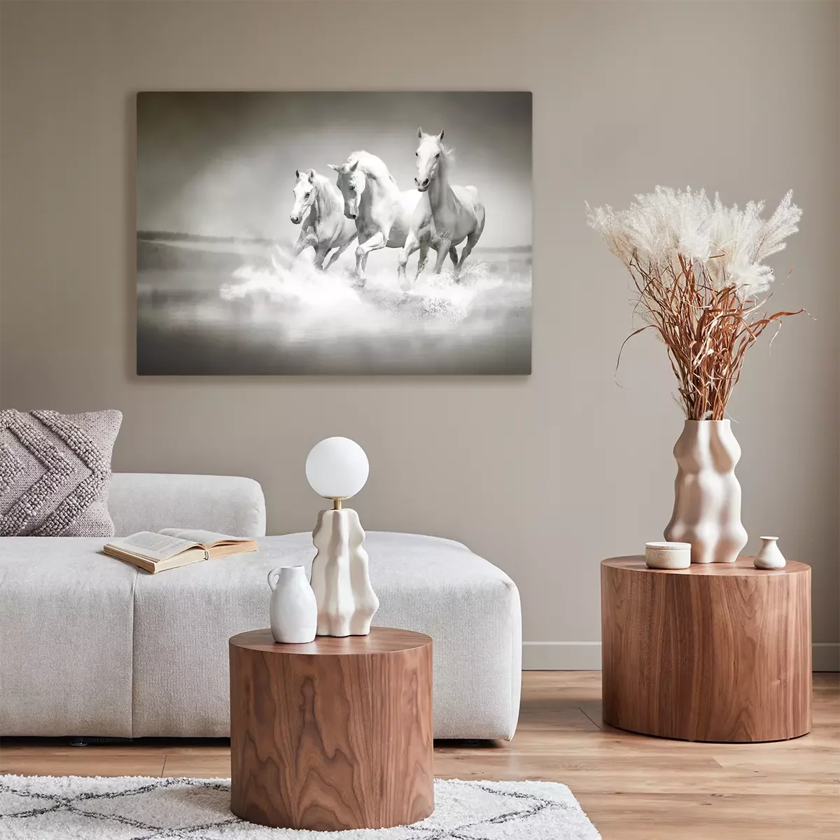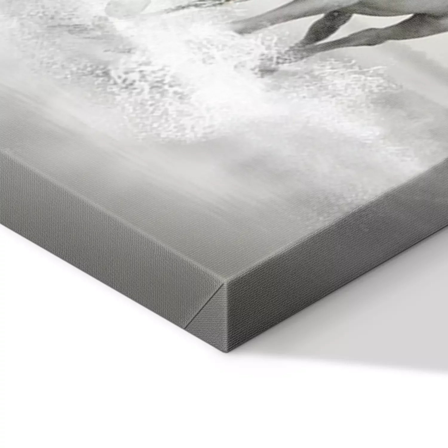 De print wordt aangebracht op hoogwaardig canvas dat op een schildersweefgetouw (spieraam) wordt gespannen. Omdat de print de zijranden bedekt, hoeft het ontwerp niet met een extra kader te worden omlijst. Wij raden ook composities aan die uit meerdere foto's bestaan en zo een coherente compositie vormen.