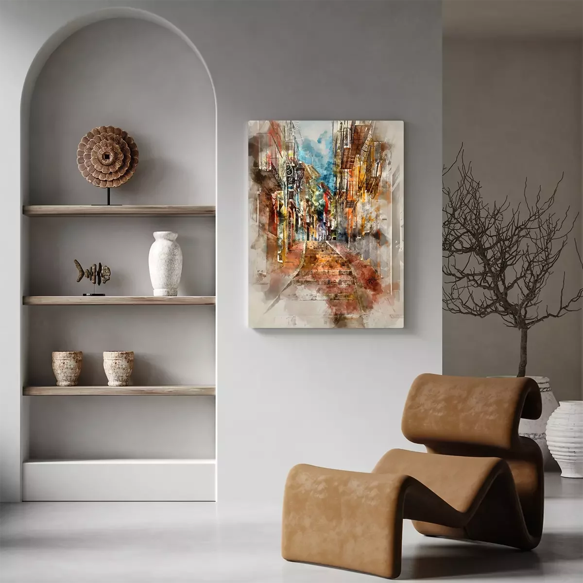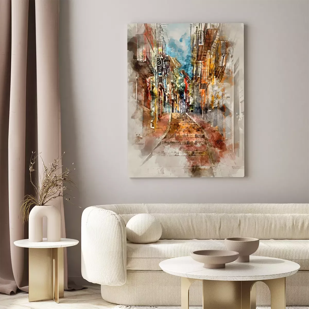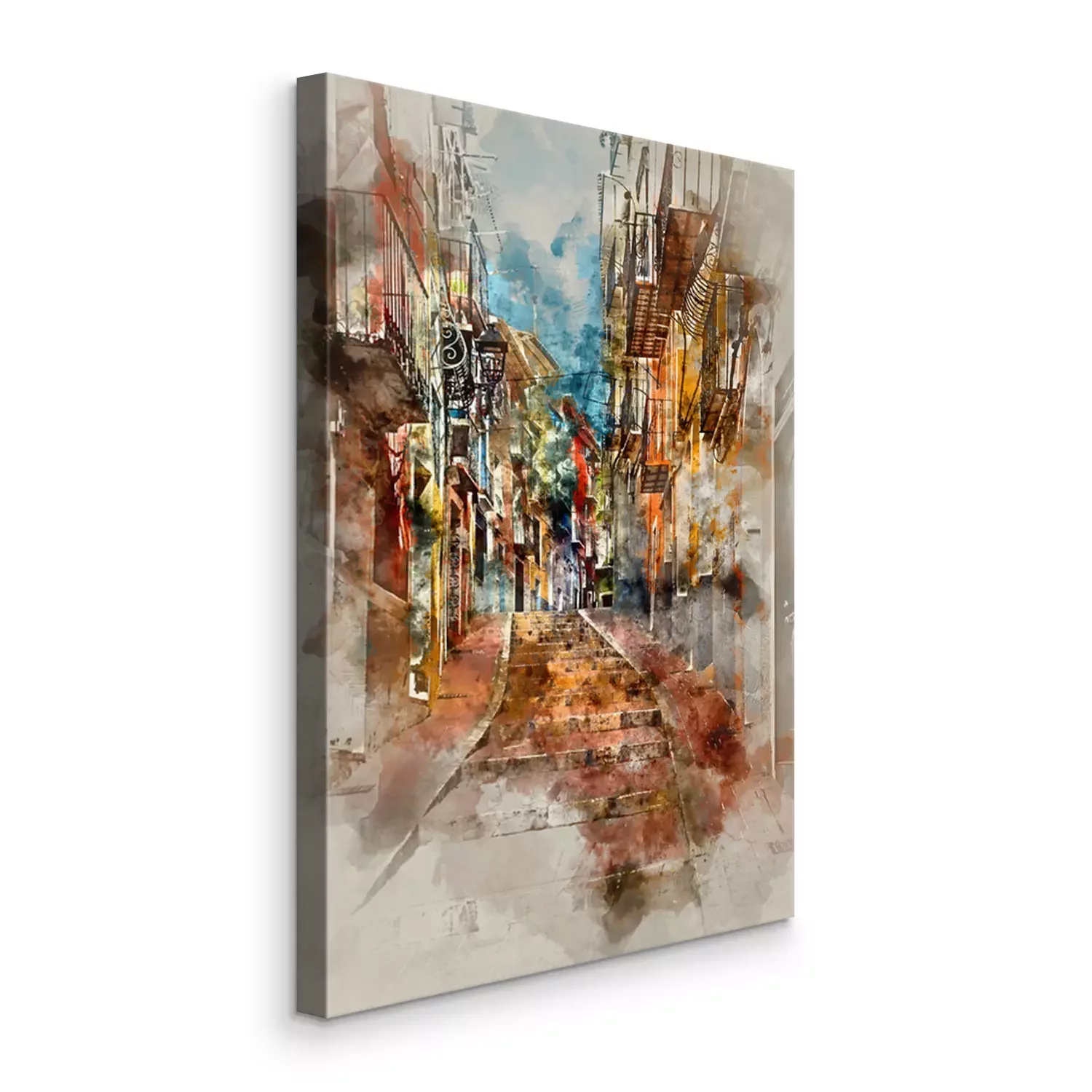 Canvas: Digitale waterverf schilderen van Villajoyosa stad. Spanje