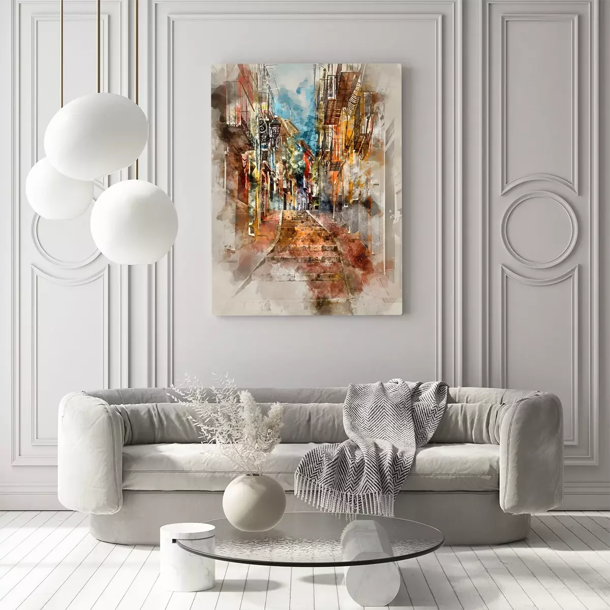 De print wordt aangebracht op hoogwaardig canvas dat op een schildersweefgetouw (spieraam) wordt gespannen. Omdat de print de zijranden bedekt, hoeft het ontwerp niet met een extra kader te worden omlijst. Wij raden ook composities aan die uit meerdere foto's bestaan en zo een coherente compositie vormen.