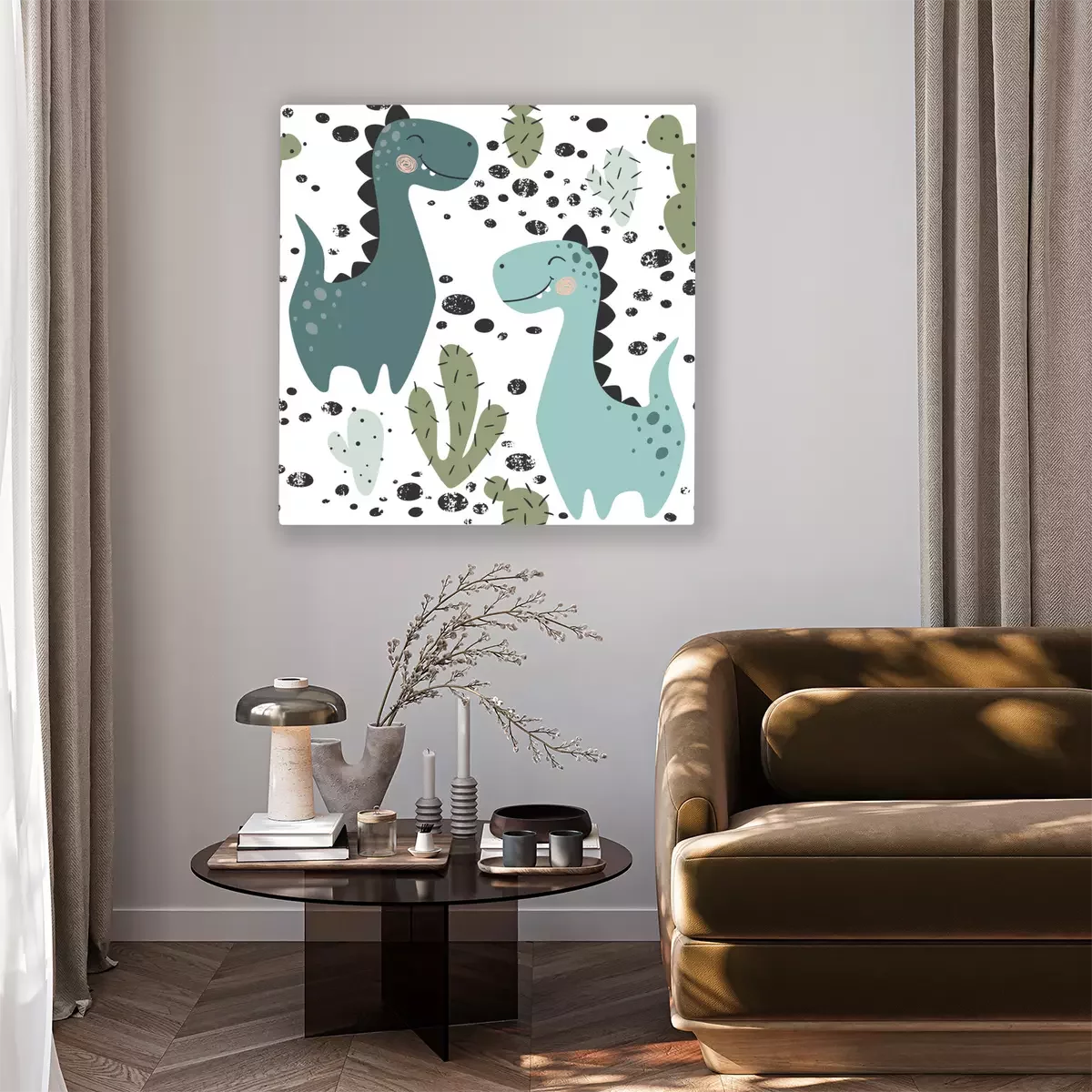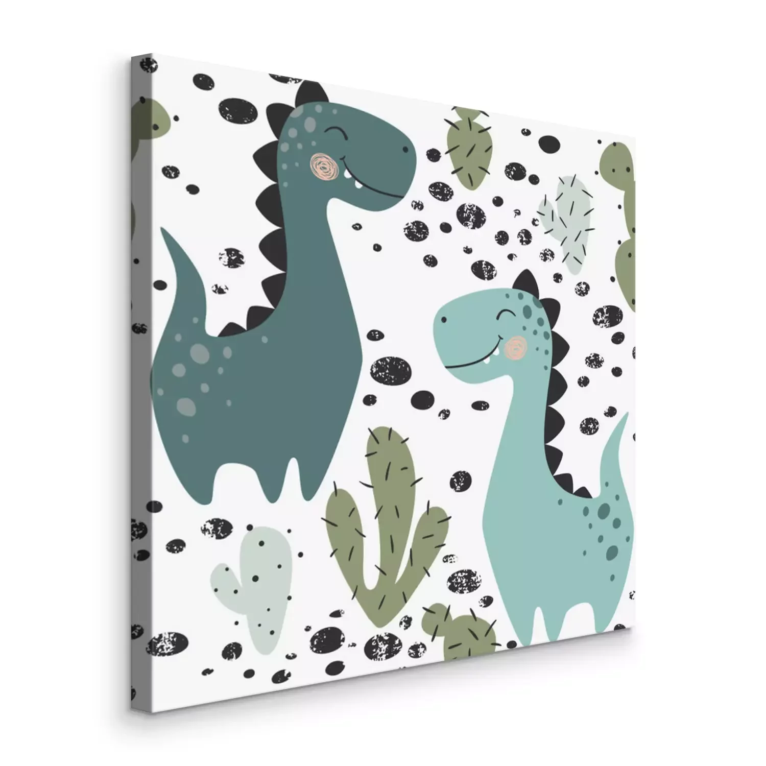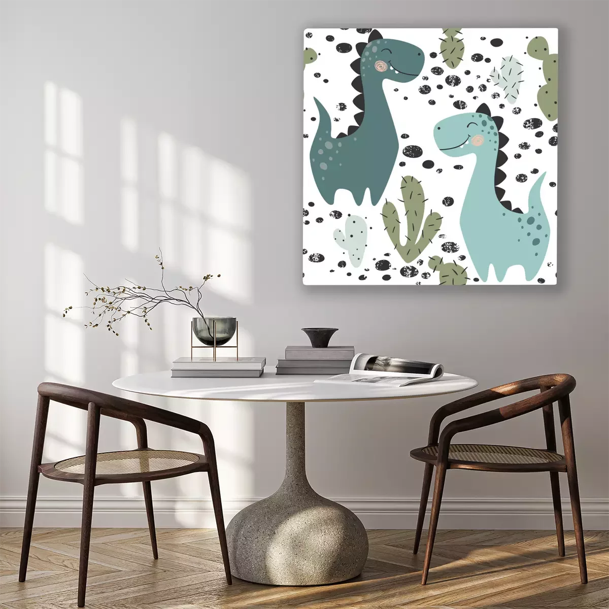 Canvas: Dinosaurussen tussen cactussen in Scandinavische stijl