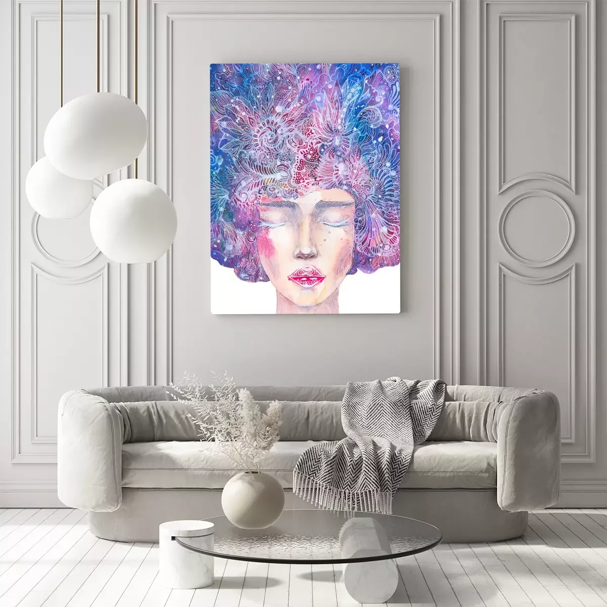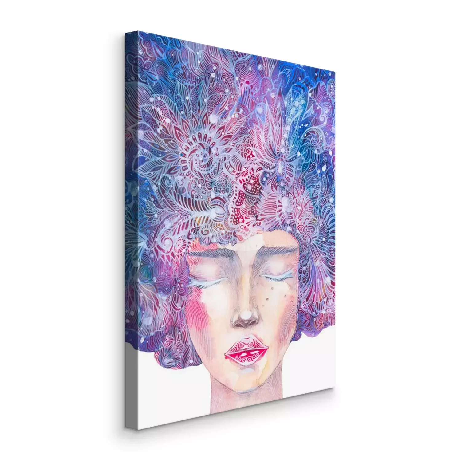 Canvas dipinto femminilità. Dipinto acquerello bella donna con occhi chiusi