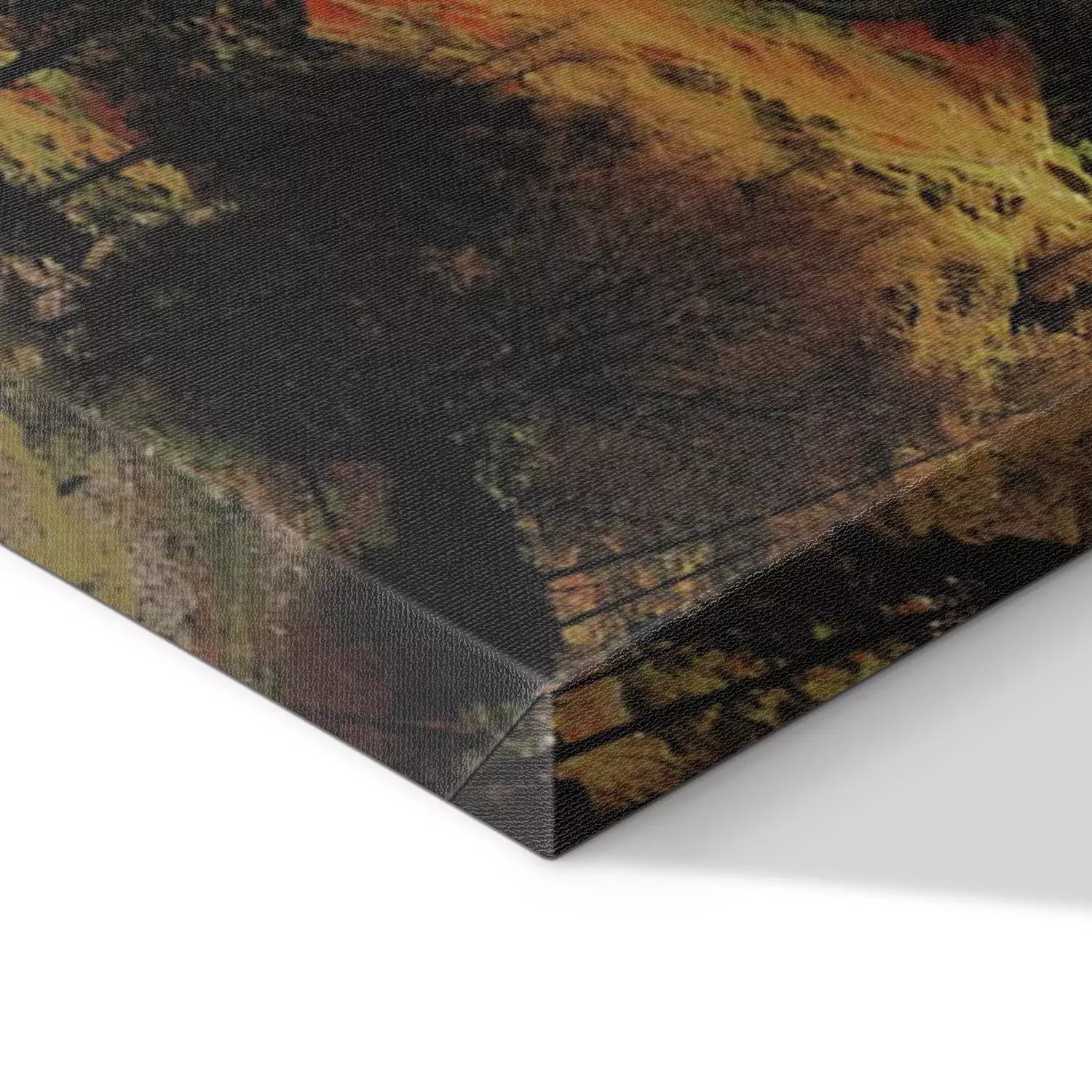 De print wordt aangebracht op hoogwaardig canvas dat op een schildersweefgetouw (spieraam) wordt gespannen. Omdat de print de zijranden bedekt, hoeft het ontwerp niet met een extra kader te worden omlijst. Wij raden ook composities aan die uit meerdere foto's bestaan en zo een coherente compositie vormen.