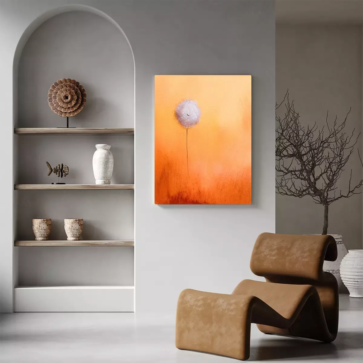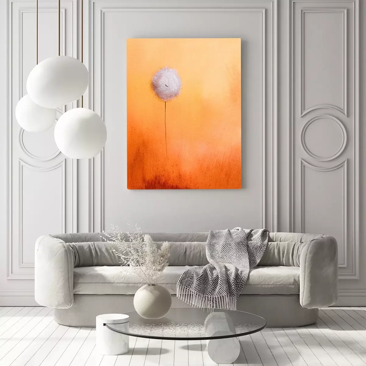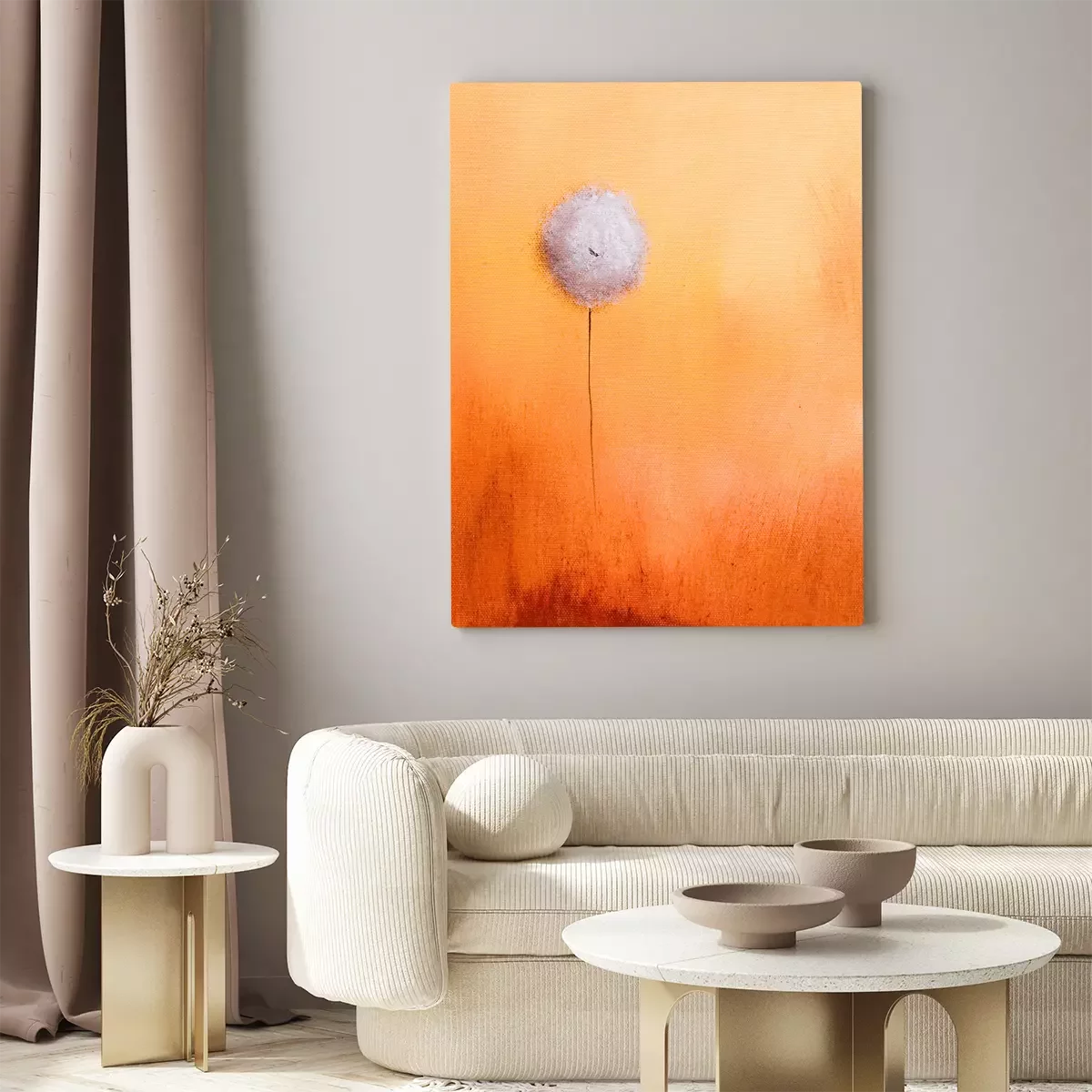 Canvas: Dit is een abstract schilderij van een paardenbloem