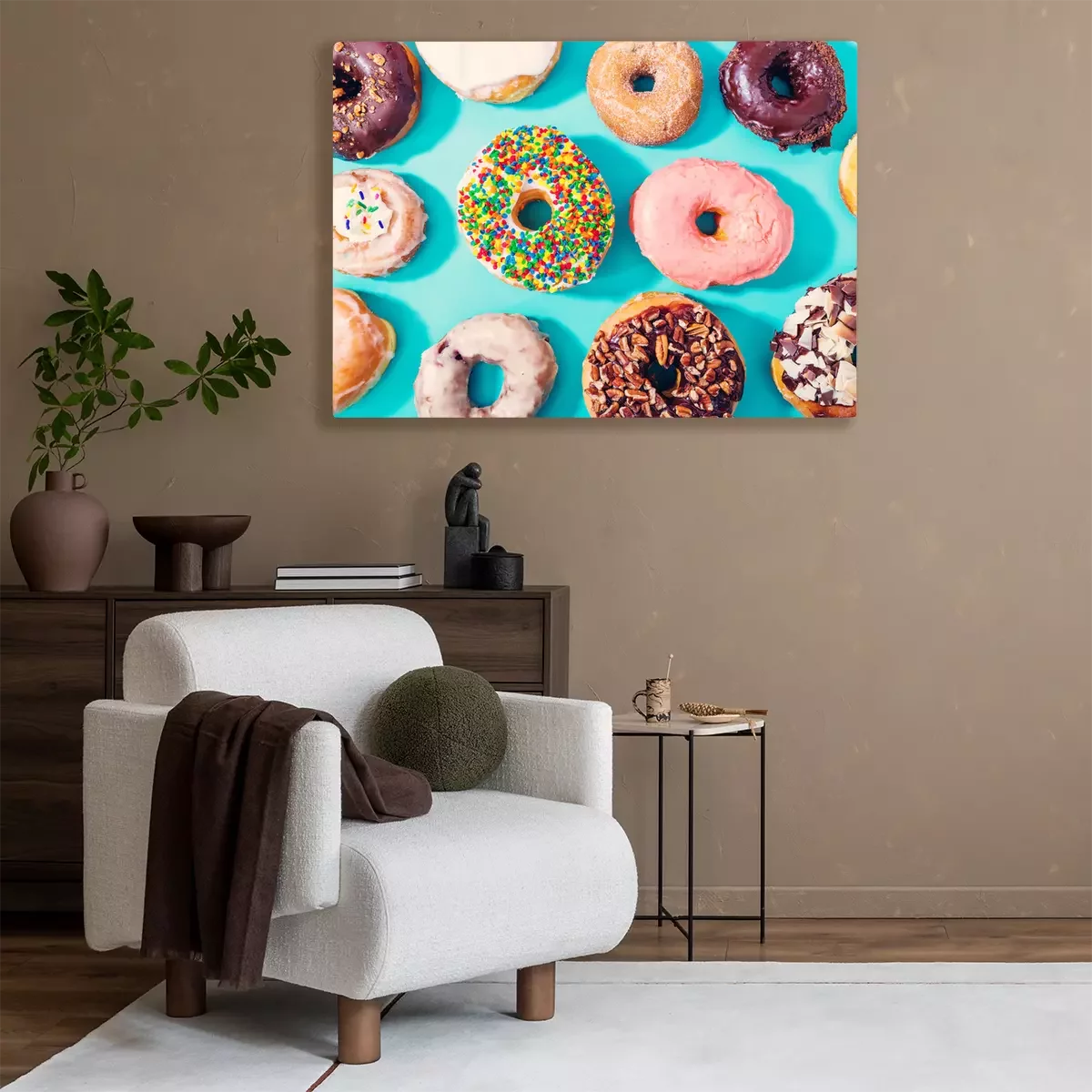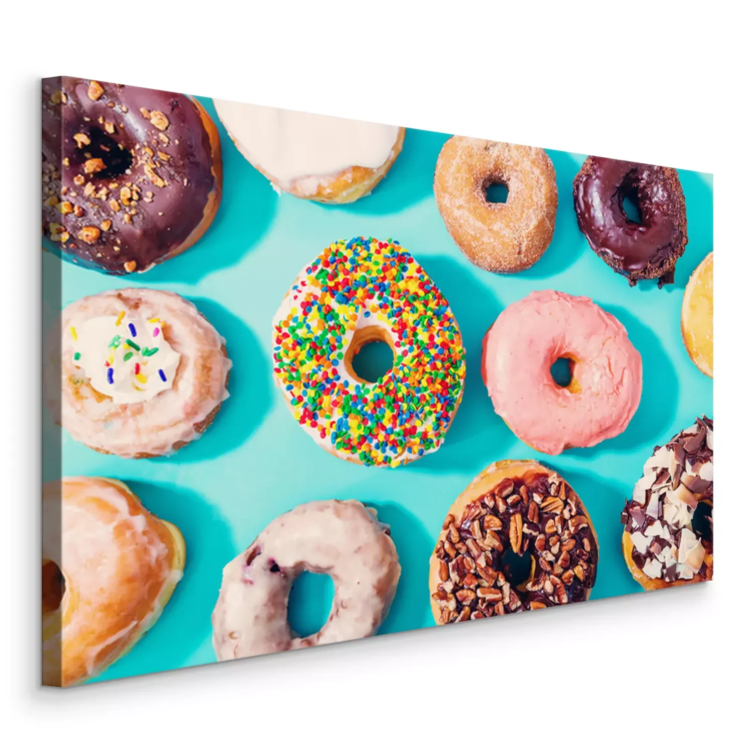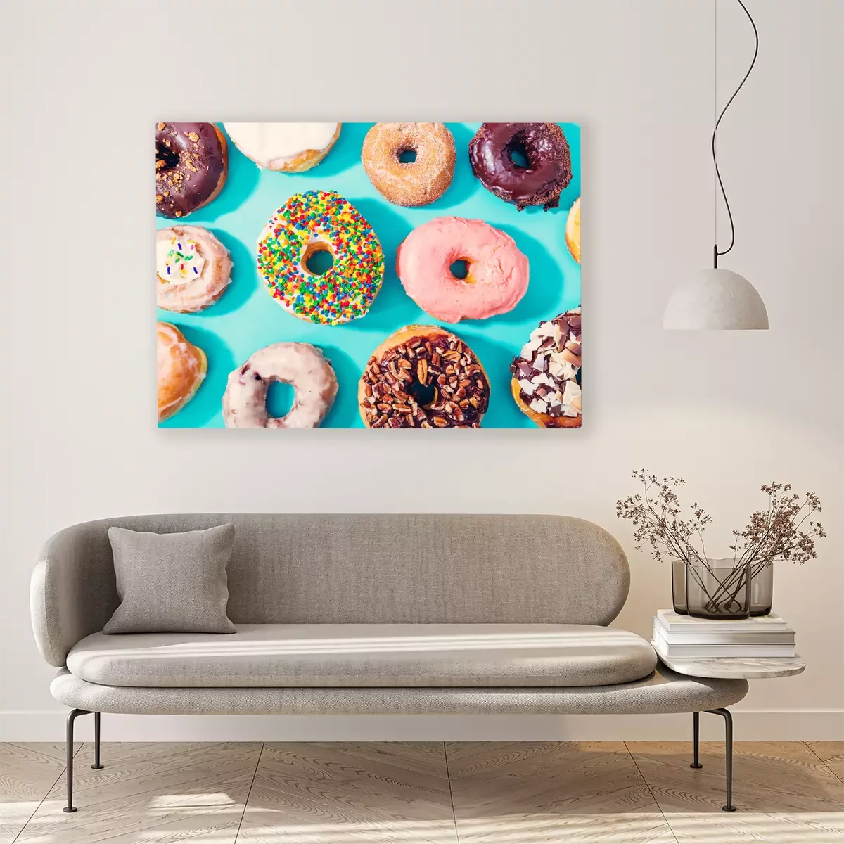 Canvas: Diverse donuts op pastel blauwe achtergrond