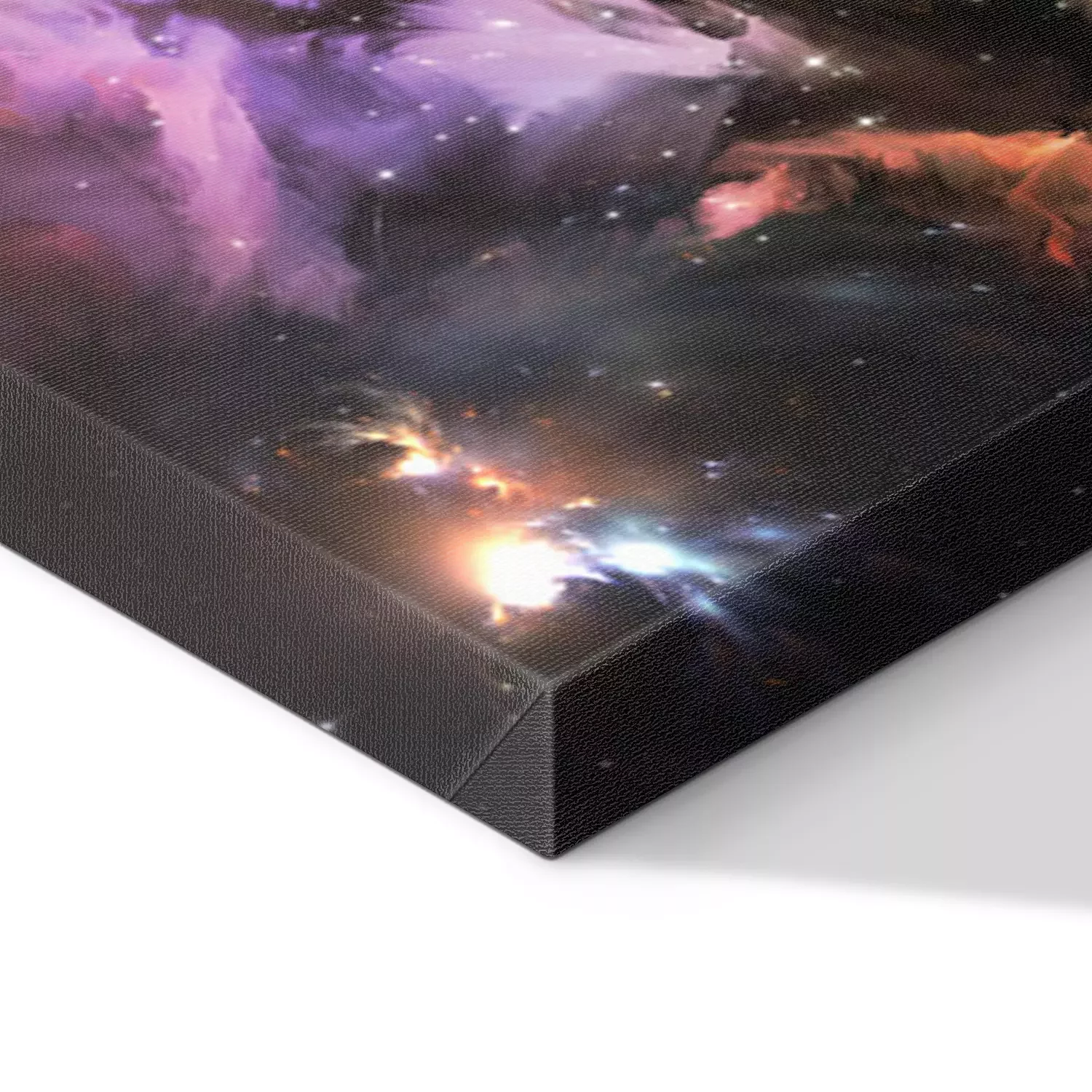 De print wordt aangebracht op hoogwaardig canvas dat op een schildersweefgetouw (spieraam) wordt gespannen. Omdat de print de zijranden bedekt, hoeft het ontwerp niet met een extra kader te worden omlijst. Wij raden ook composities aan die uit meerdere foto's bestaan en zo een coherente compositie vormen.