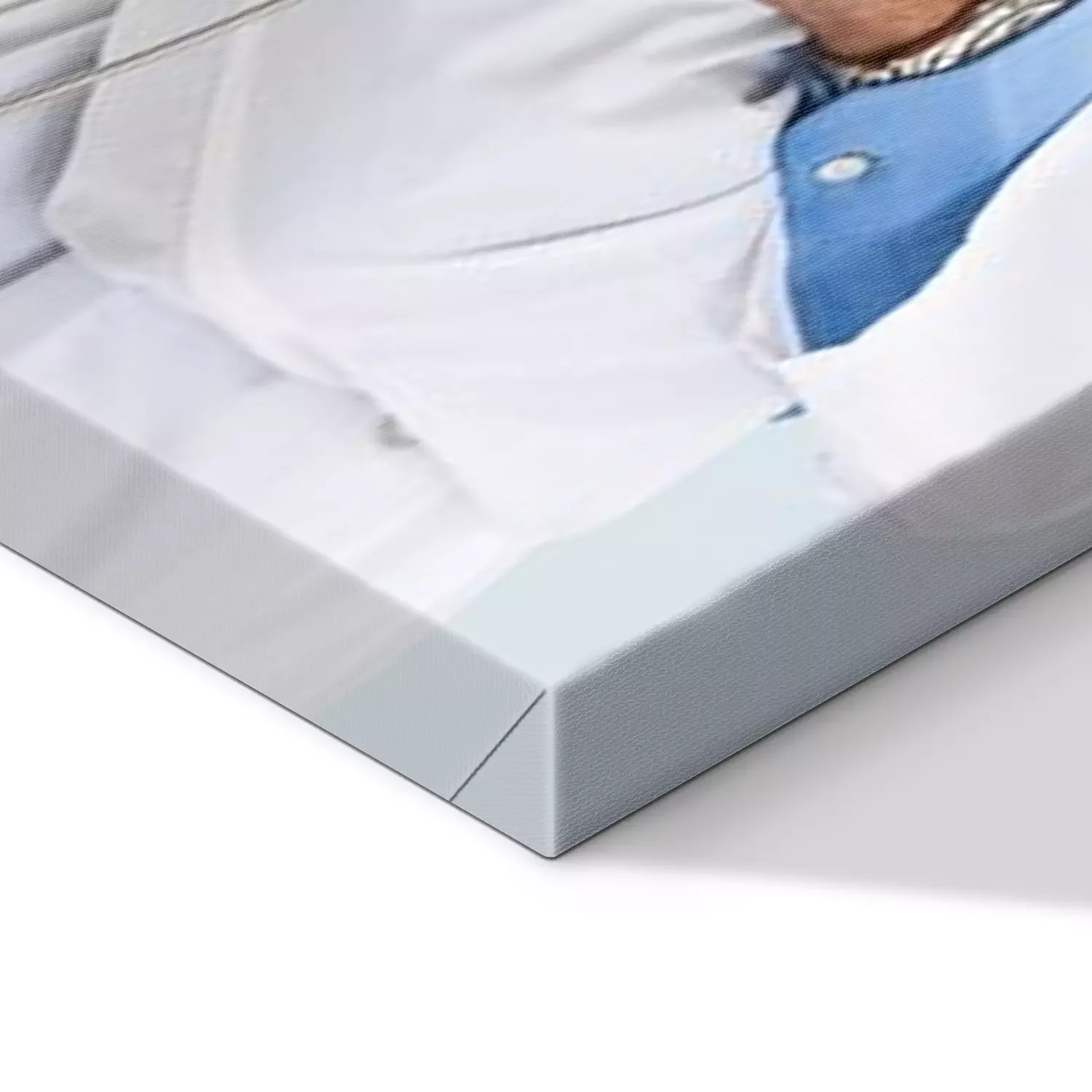 De print wordt aangebracht op hoogwaardig canvas dat op een schildersweefgetouw (spieraam) wordt gespannen. Omdat de print de zijranden bedekt, hoeft het ontwerp niet met een extra kader te worden omlijst. Wij raden ook composities aan die uit meerdere foto's bestaan en zo een coherente compositie vormen.
