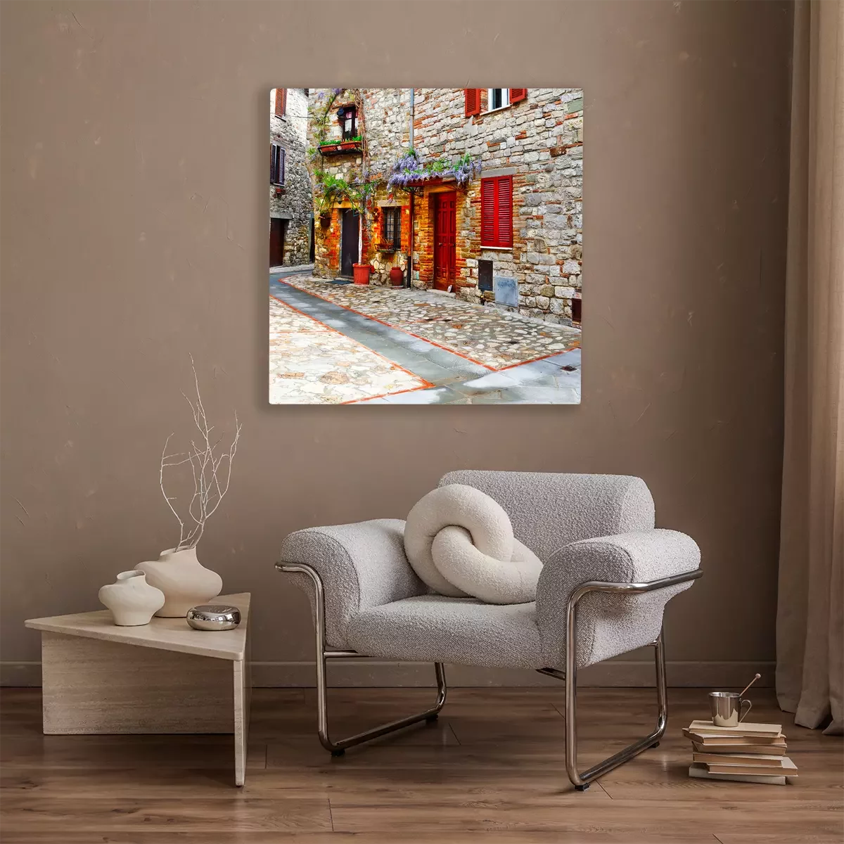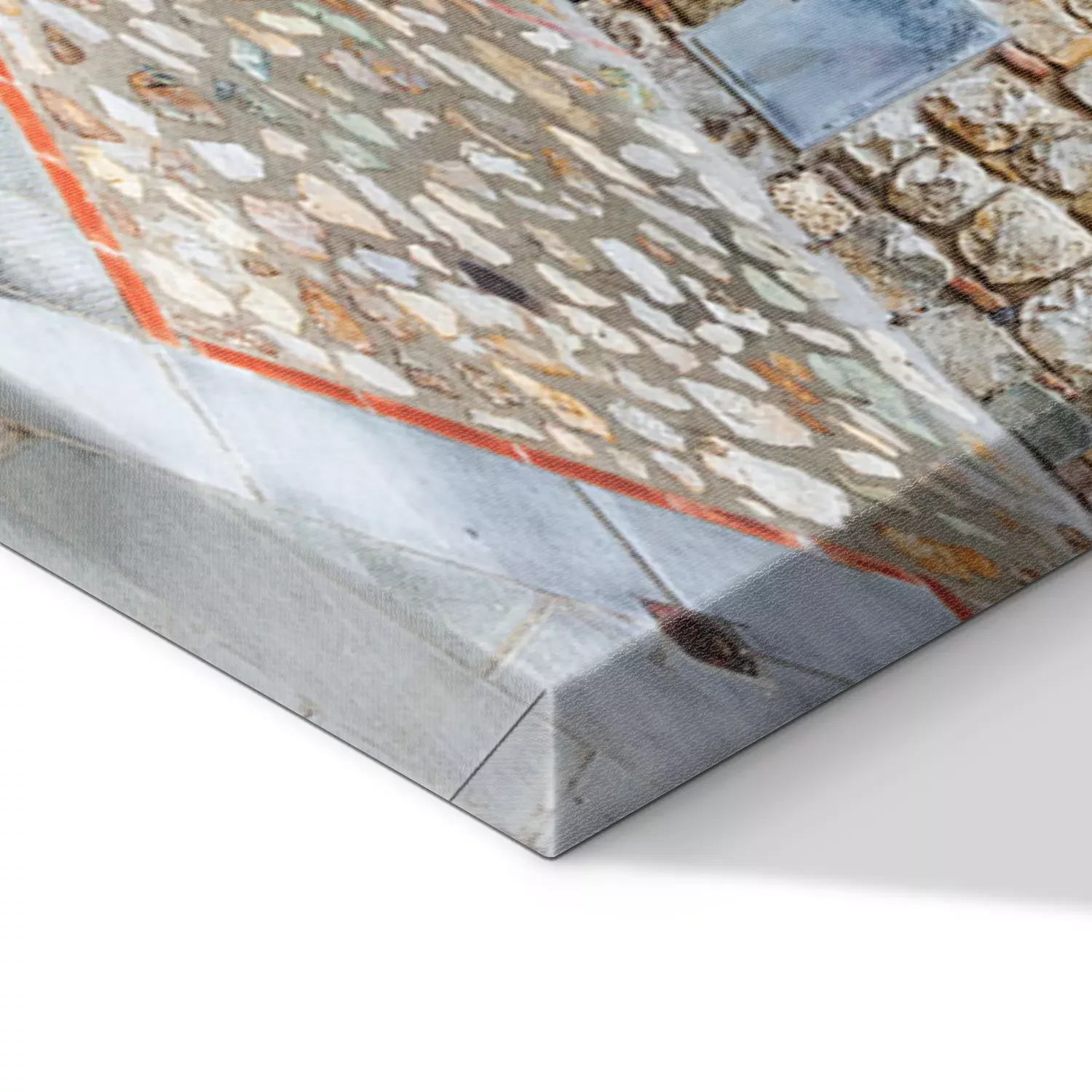De print wordt aangebracht op hoogwaardig canvas dat op een schildersweefgetouw (spieraam) wordt gespannen. Omdat de print de zijranden bedekt, hoeft het ontwerp niet met een extra kader te worden omlijst. Wij raden ook composities aan die uit meerdere foto's bestaan en zo een coherente compositie vormen.