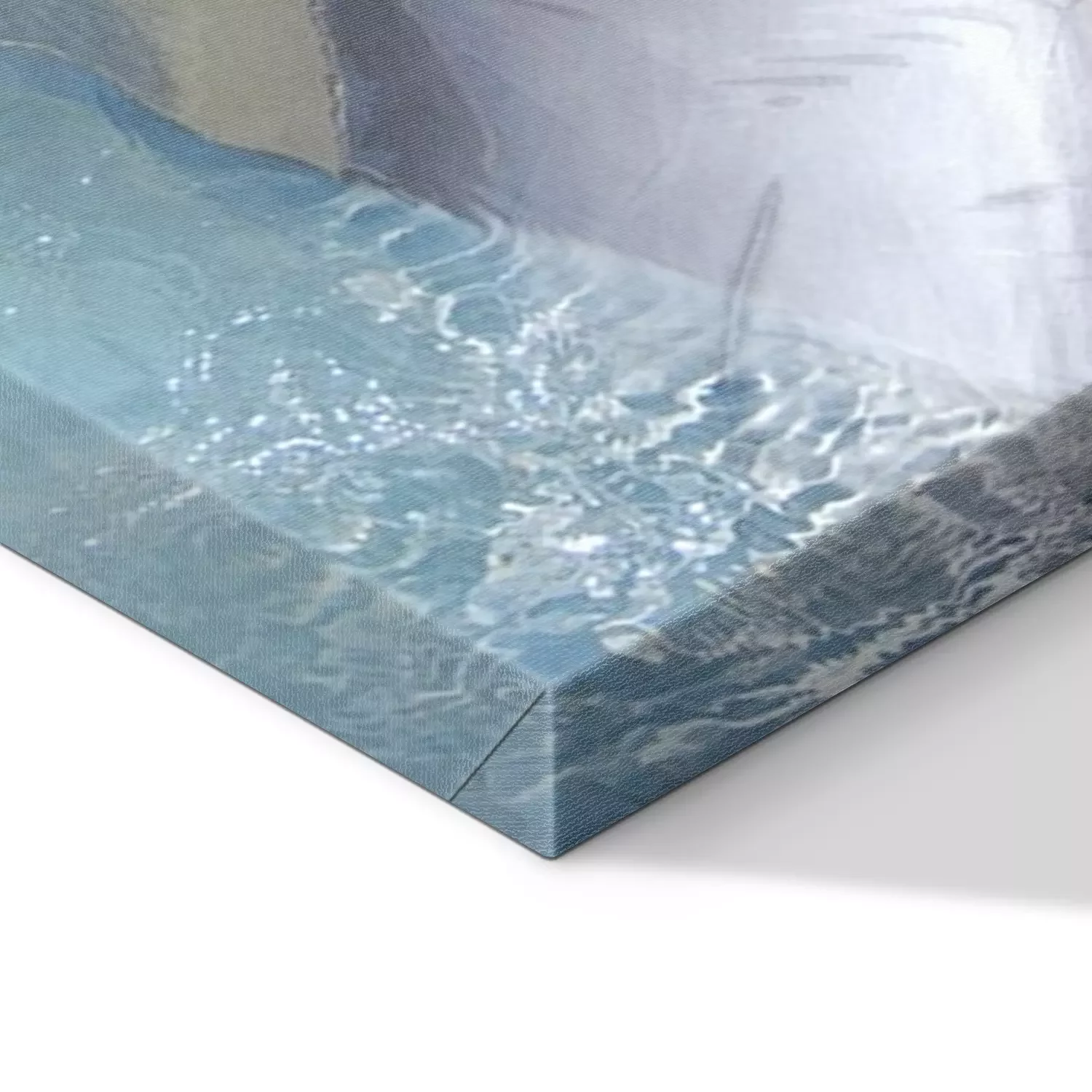 De print wordt aangebracht op hoogwaardig canvas dat op een schildersweefgetouw (spieraam) wordt gespannen. Omdat de print de zijranden bedekt, hoeft het ontwerp niet met een extra kader te worden omlijst. Wij raden ook composities aan die uit meerdere foto's bestaan en zo een coherente compositie vormen.