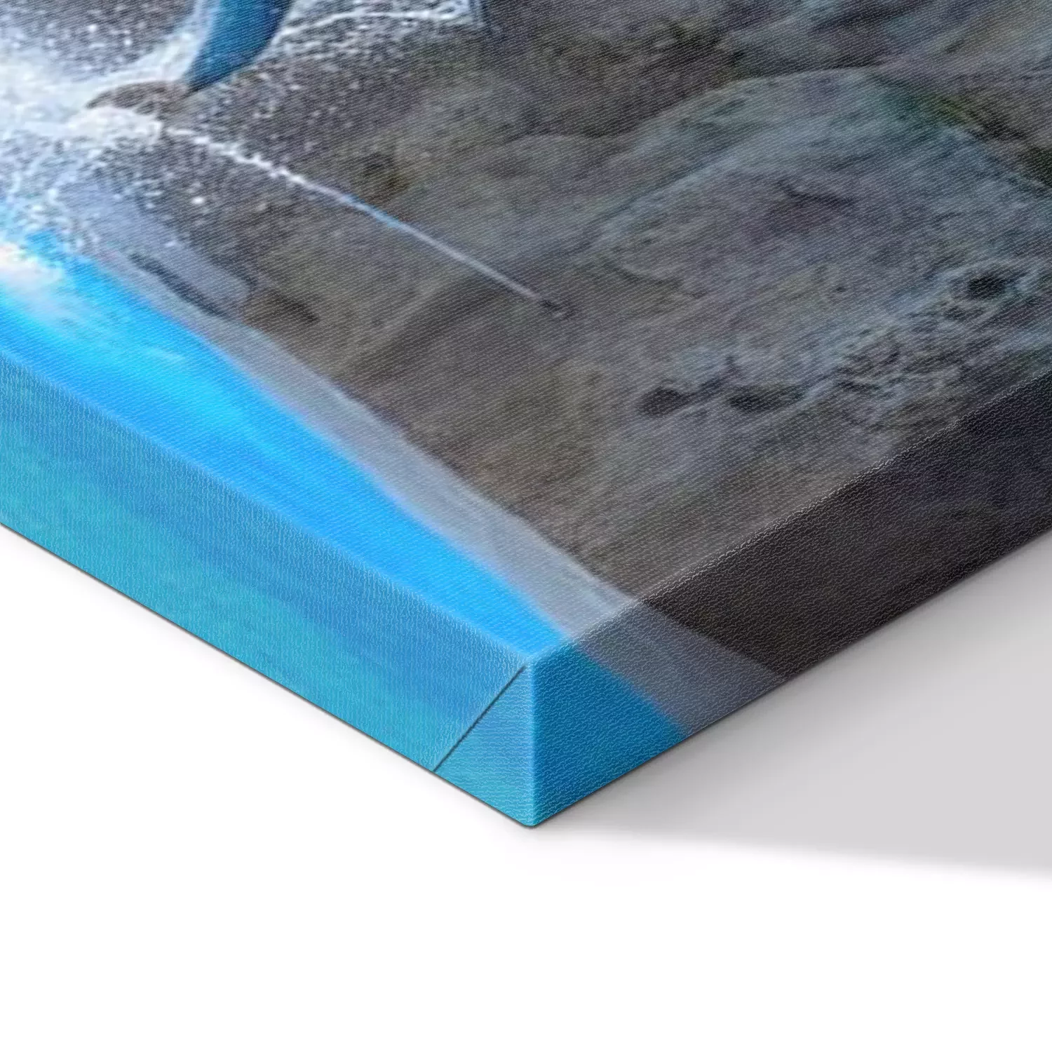 De print wordt aangebracht op hoogwaardig canvas dat op een schildersweefgetouw (spieraam) wordt gespannen. Omdat de print de zijranden bedekt, hoeft het ontwerp niet met een extra kader te worden omlijst. Wij raden ook composities aan die uit meerdere foto's bestaan en zo een coherente compositie vormen.